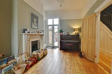Smooth ceiling, ornate cornicing, picture rails, double glaze double doors onto rear garden, decorative marble fireplace, column radiator and exposed floorboards.