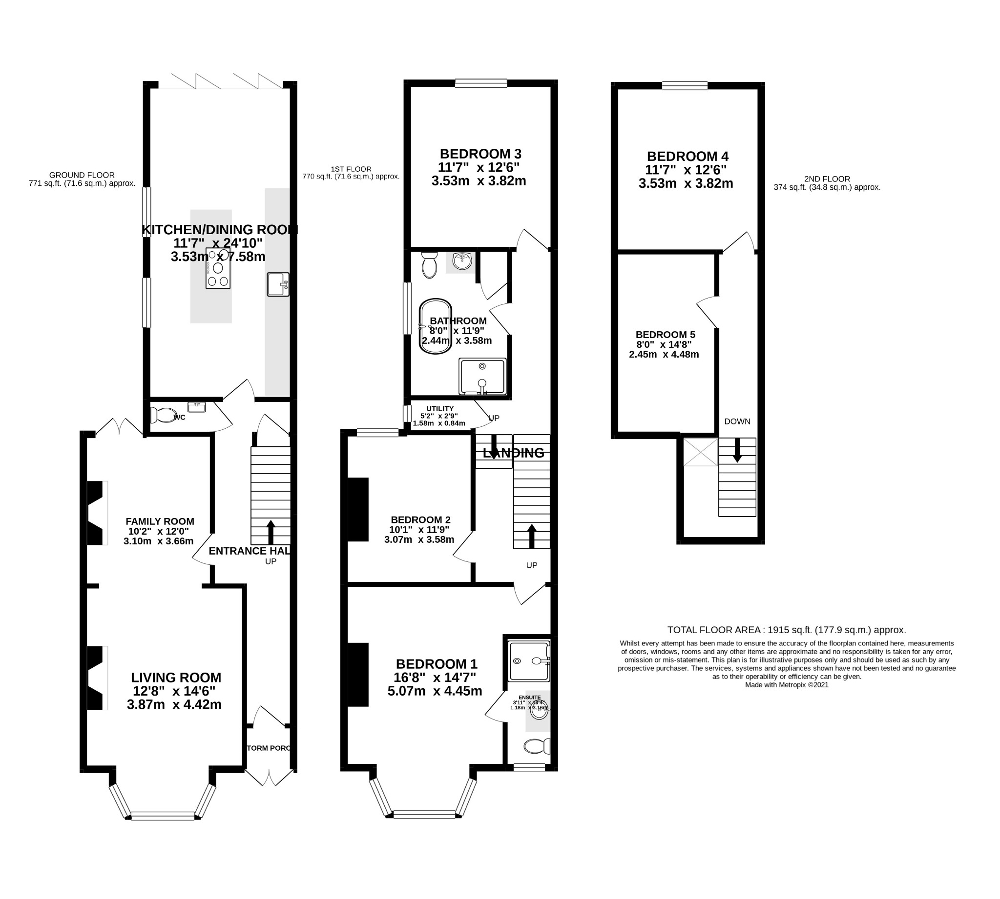 With almost 2,000 sq ft of space, the internal accommodation comprises; Storm porch leading to a grand entrance hall, cloakroom, a cosy living room with double glazed sash bay windows with fitted shutters and a wood burning stove, open to a family room with period fire place and access to the garden. At the rear of the property an exquisite kitchen/dining room with a high-end kitchen with Quartz worktops, a long contrasting island/breakfast bar, good quality fitted appliances, a wood finish pantry cupboard, and a spacious dining area in front of the bi-folding doors which lead onto the rear garden. The basement is an undecorated cellar, suitable for storage only. On the first floor, an elegant master bedroom with a luxorious en-suite shower room, two further double bedrooms, one currently used as a study, and an opulent bathroom with freestanding bath tub, a walk-in shower cubicle and marble-topped sink unit. On the top floor, two further double bedrooms.The west facing rear garden is a private space with tall boundary walls, a patio from the rear of the property and a sizeable lawn. As part of the extensive renovation the property was re-wired, re-plumbed and re-plastered, the roof structure was improved, damp and timber treatment completed along with replacement of the main fixtures, fittings, decor and floor coverings. Overall this outstanding property will make for an excellent family home for the most discerning of purchasers.
