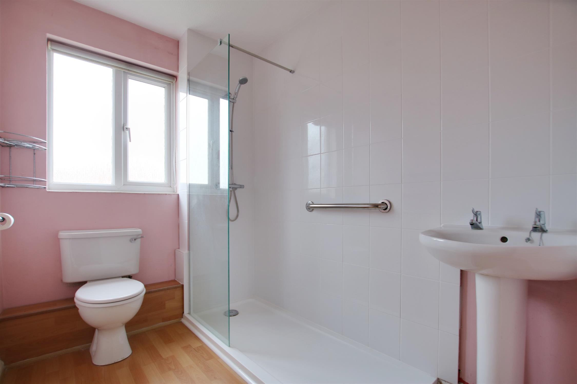 Upstairs, there are two double bedrooms. Bedroom one is generous in size and both bedrooms offer built in storage. The bathroom is fitted with double length walk-in shower, hand basin and toilet.