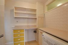 Double glazed door to side. Plumbing for washing machine with work surface over. Recess for fridge/freezer.