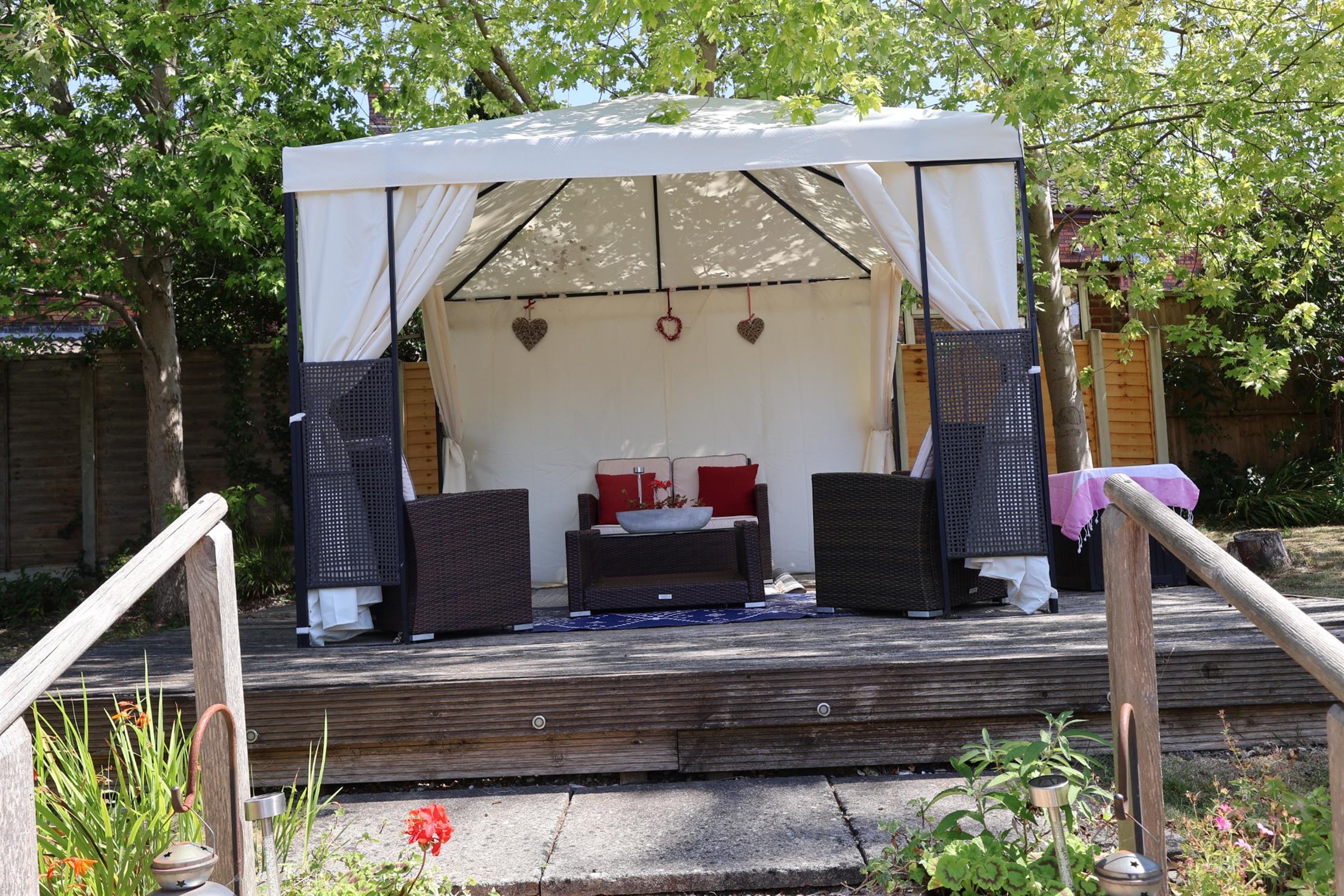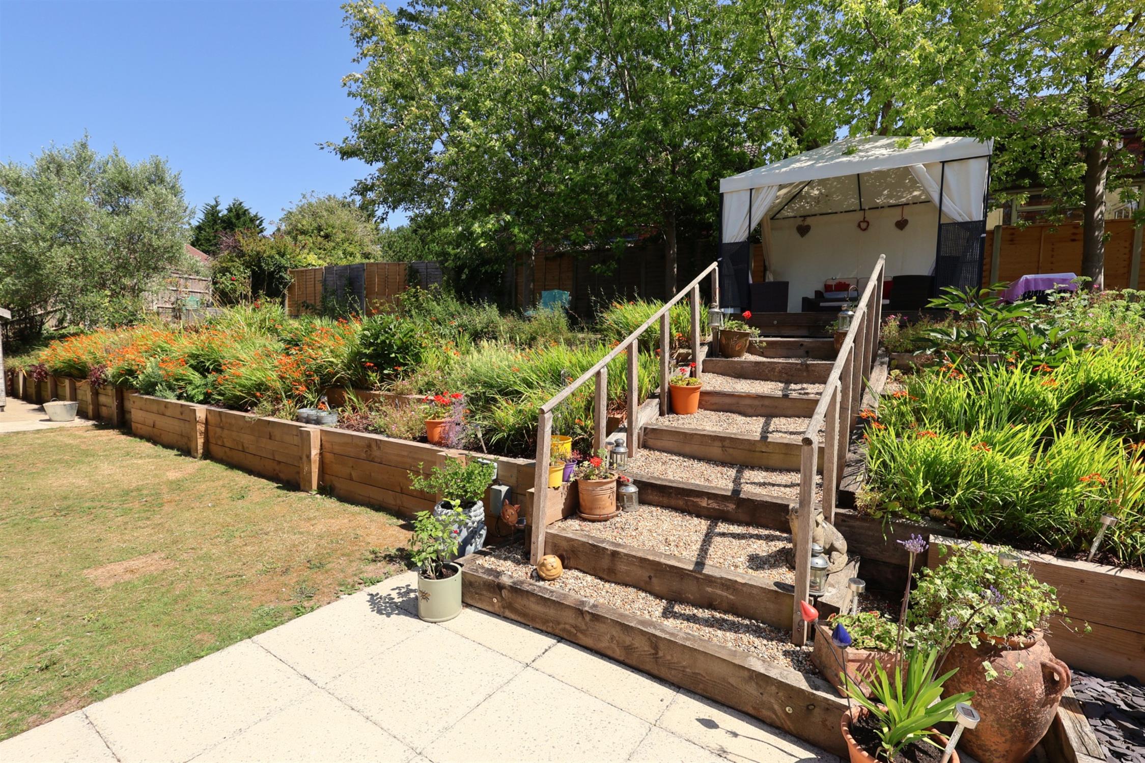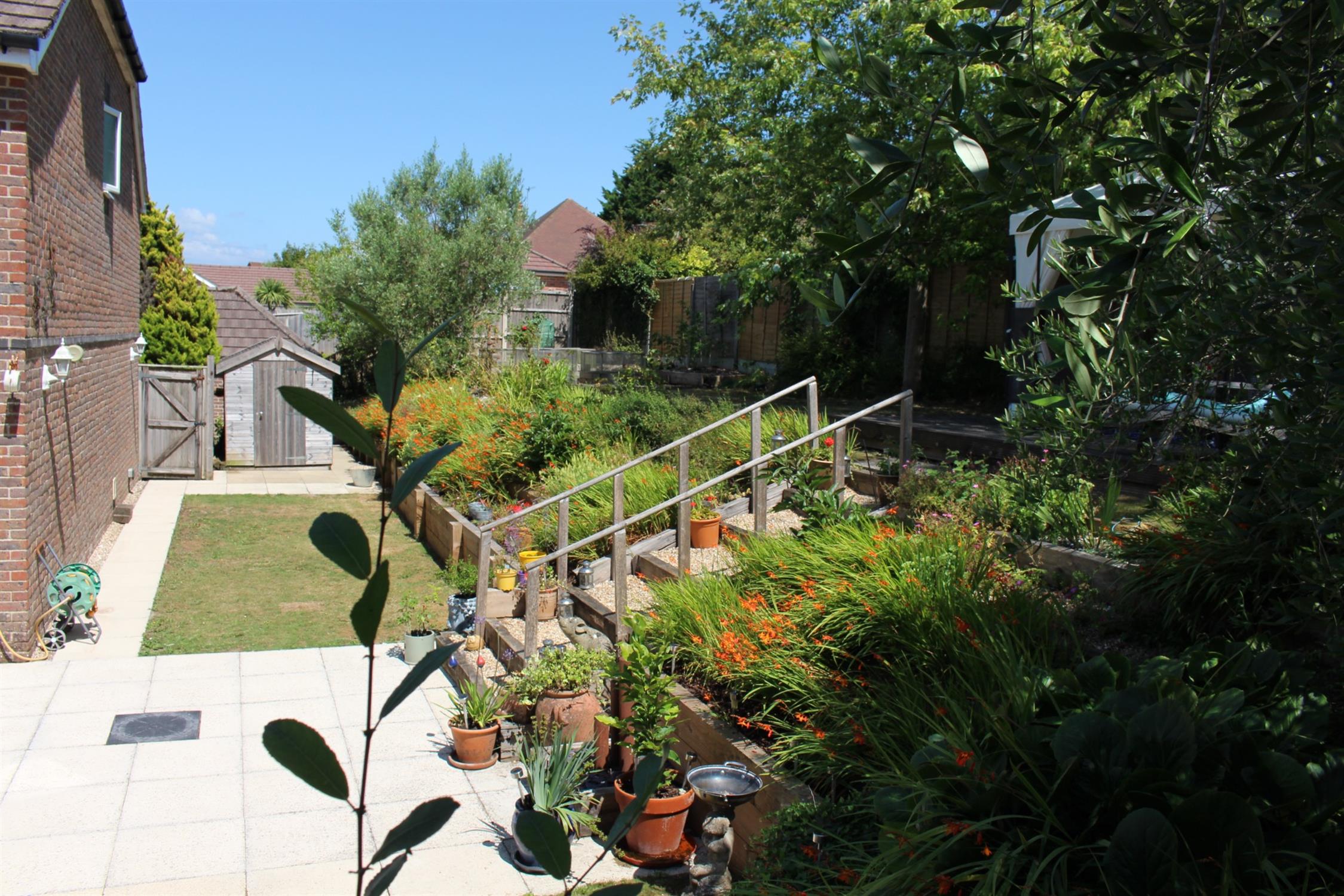 Fully enclosed and not overlooked, the rear garden is a particular feature of the property. The lower garden area is mostly lawned enjoying a southerly aspect set to the rear and side of the property. There is a good size paved entertaining patio area. A well planted colourful bank encloses the lower garden with steps up the the upper garden area which is also mostly laid to lawn. There is a productive vegetable garden with raised planters, Timber sun deck with pergola over . Garden workshop/store outside tap and power.