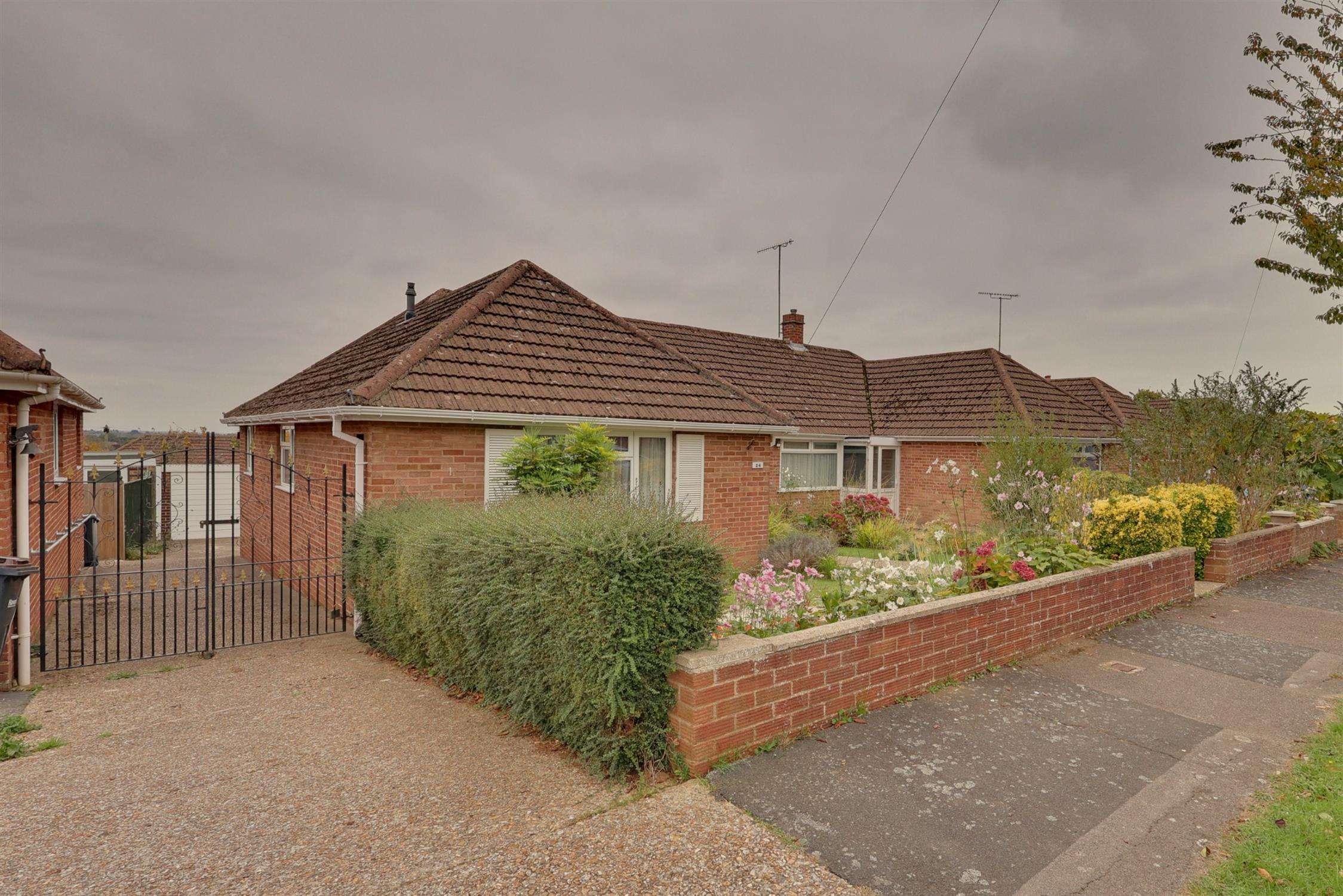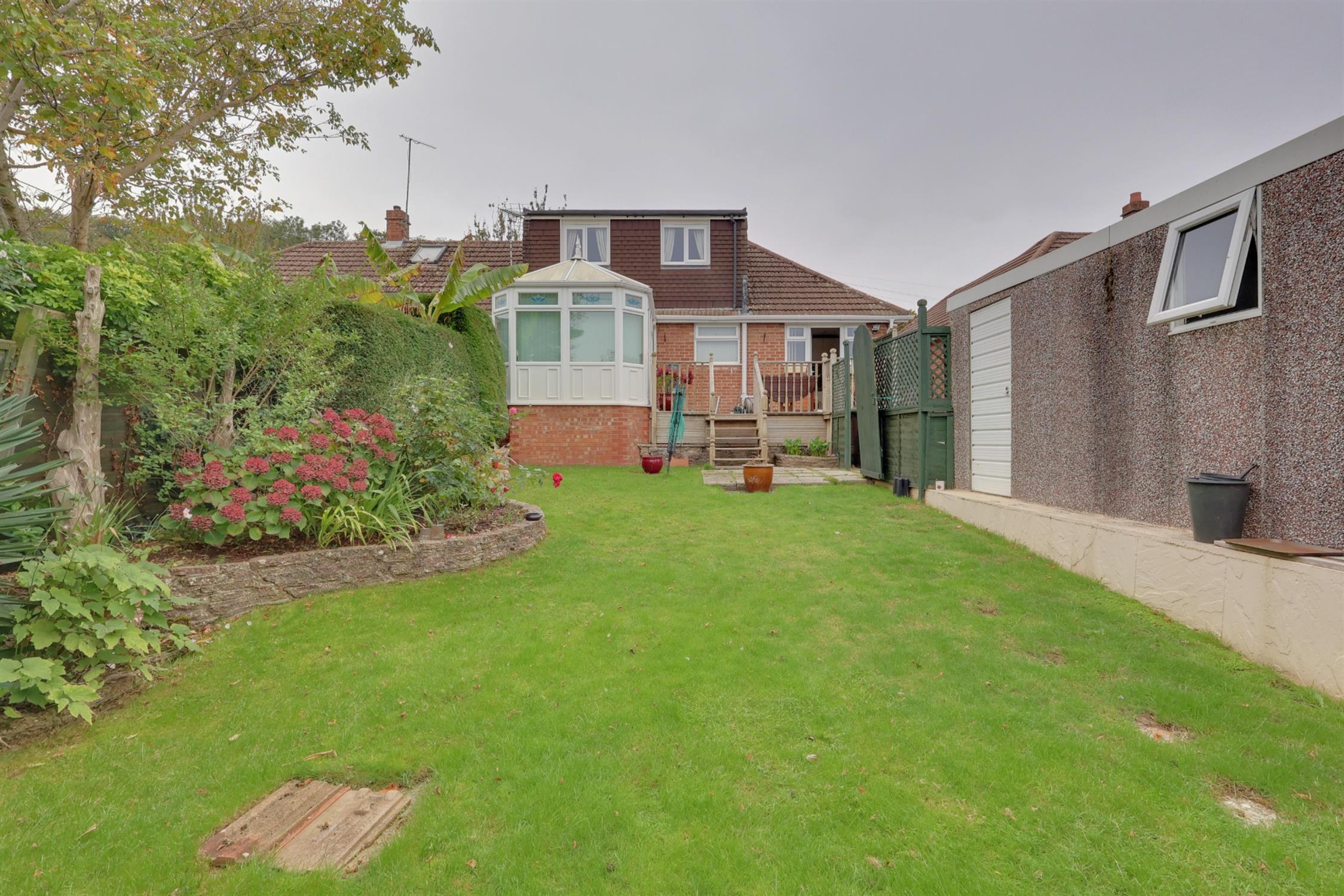 A three bedroom, semi-detached bungalow that has been wonderfully cared-for by the current owner. There is a porch which provides access to the entrance hall. The sitting room enjoys a gas fireplace, attractive bay window and sliding doors that open into the conservatory. There is a modern fitted kitchen, shower room and two double bedrooms, which completes the ground floor accommodation. From the first floor there is a generous double bedroom with spacious eaves storage and has remarkable, far reaching views. There is a shared driveway which leads to the detached garage.