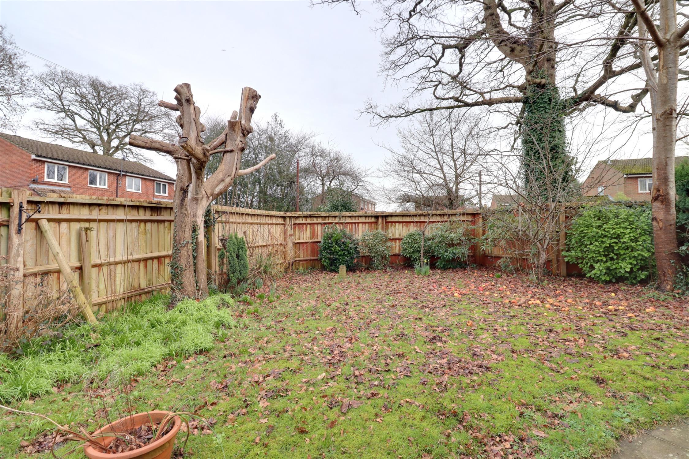 Large corner plot offering potential to extend subject to the required consents, mainly laid to lawn, patio, shed, tree and shrubs, enclosed by fence, side pedestrian access.