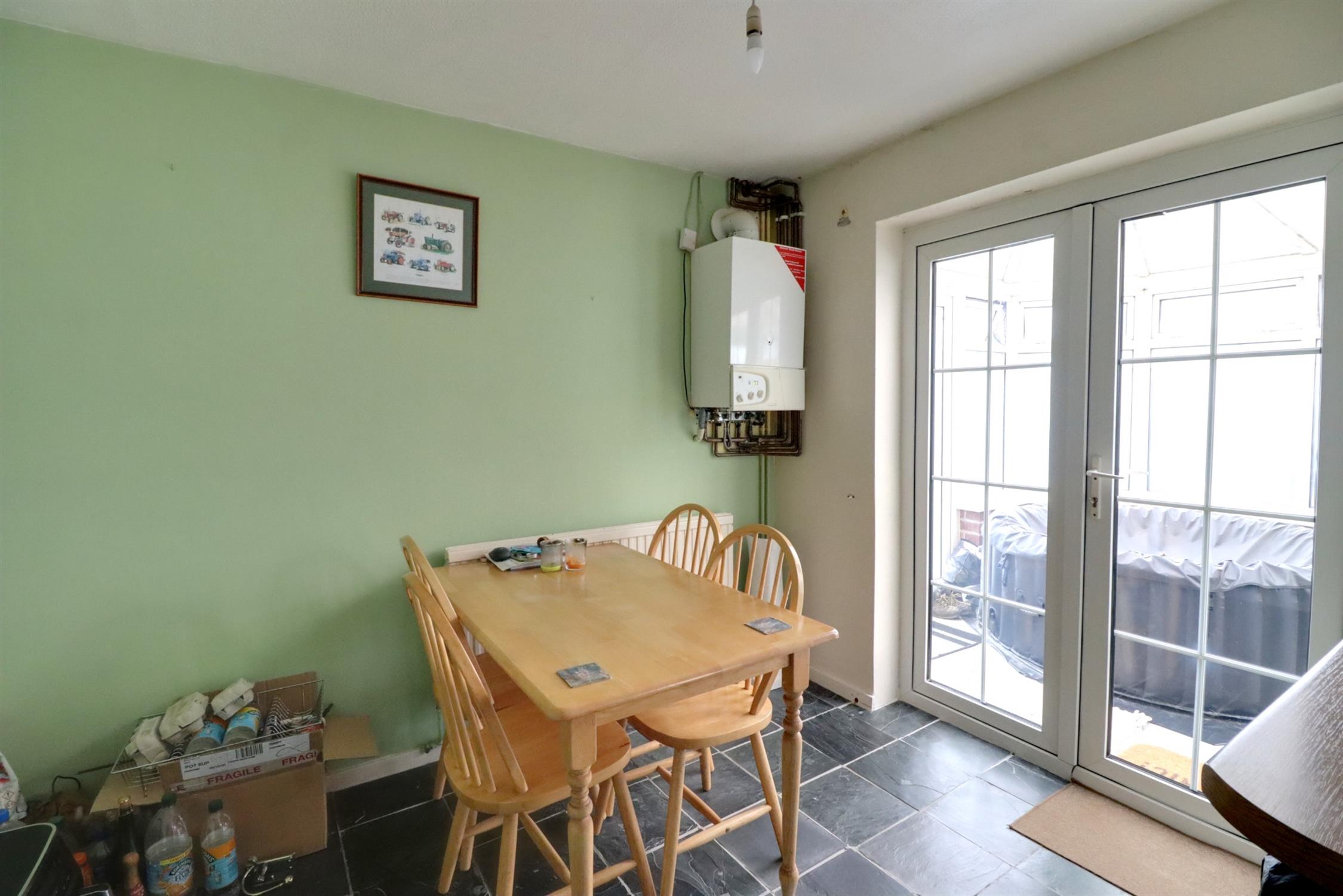 Fitted with a range of wall and base units with worksurfaces over, spaces for cooker, washing machine and fridge/freezer, inset stainless steel sink and drainer, wall mounted boiler, rear aspect double glazed window, rear aspect double glazed door leading to the conservatory.
