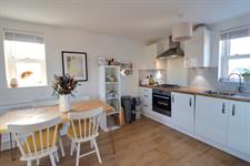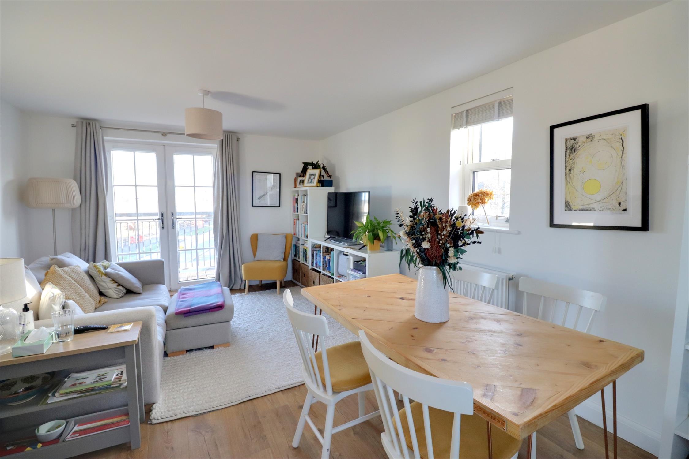 Lounge area with radiator, side aspect double glazed window and double glazed French doors leading to the balcony, laminate flooring. Kitchen area with a range of wall and base units with work surfaces over, integral gas hob and electric oven with extractor hood over, single sink and drainer, integral fridge/freezer, integral slimline dishwasher, cupboard housing the boiler,
