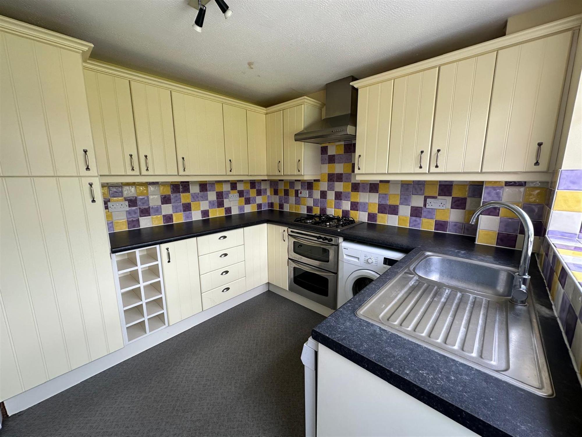 KITCHEN:- Fitted units with electric oven & gas hob, fridge/freezer, washing machine & dishwasher. Sink & drainer. Window looking out through to the sun room/garden.