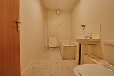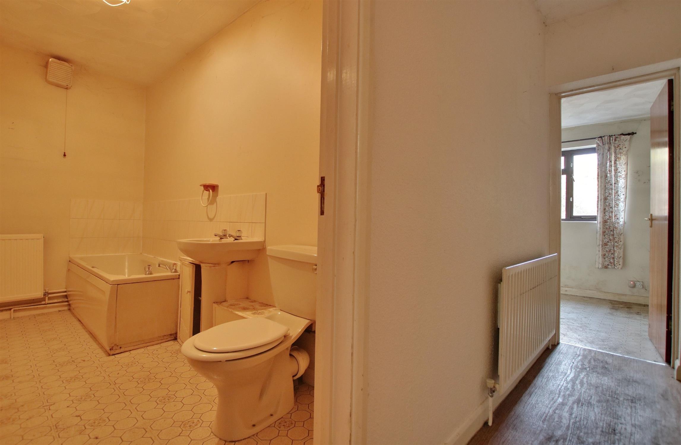 Vinyl flooring. Smooth walls and textured ceiling. Panelled bath, low level w.c. and ceramic wash basin. Radiator. Extractor fan.