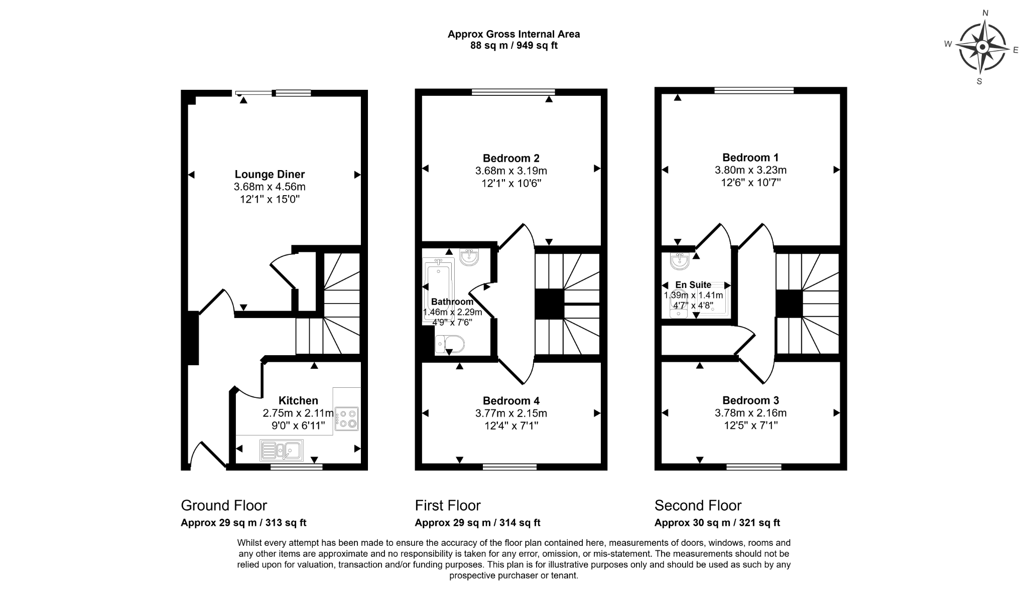Three piece bathroom on the first floor and en-suite to main bedroom on the second floor. Outside, there is a low maintenance, private, enclosed rear garden. The house also benefits from a garage en bloc just opposite in addition to driveway parking.