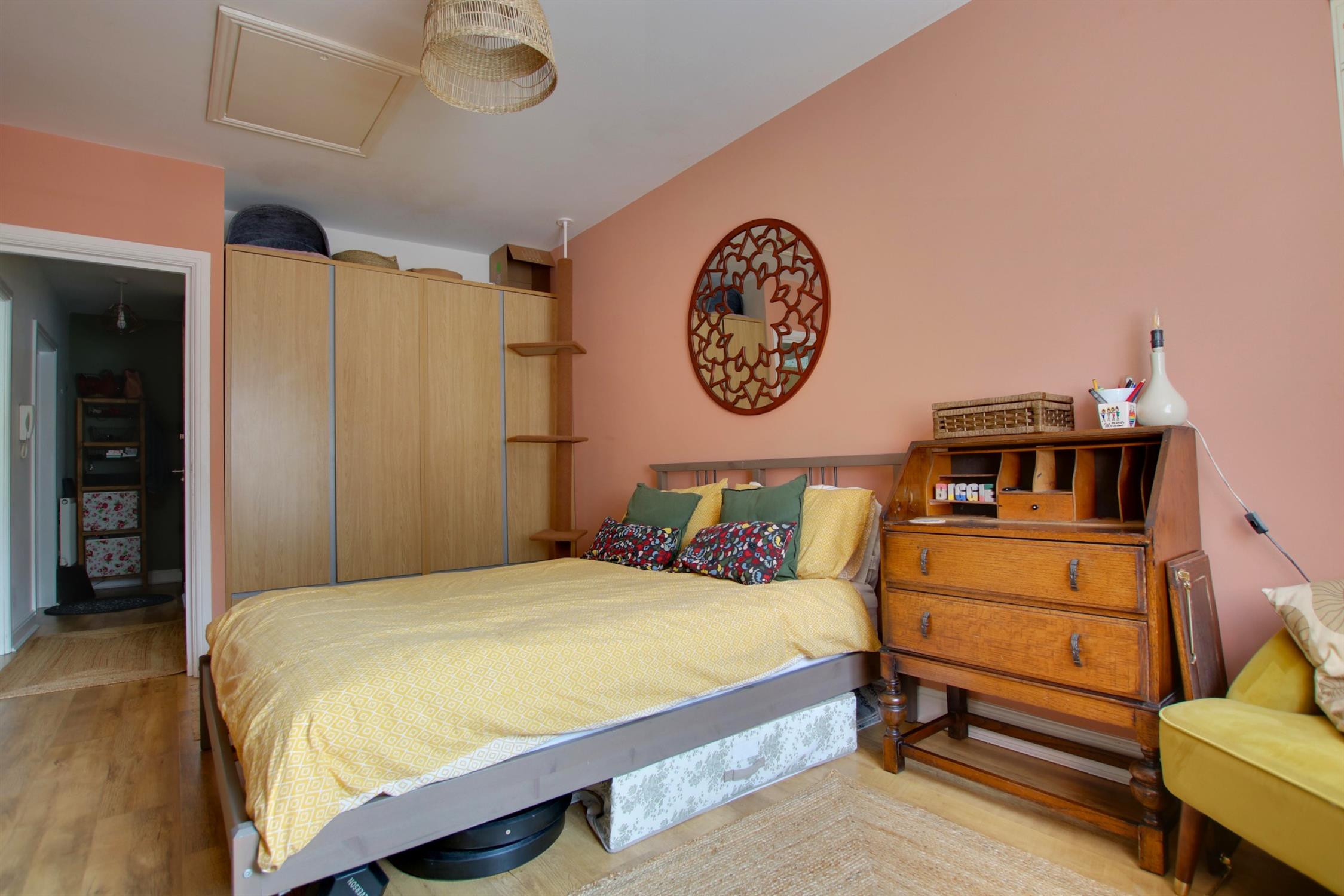 Wood effect laminate flooring. Smooth walls and ceiling. Radiator. Entry telephone system.