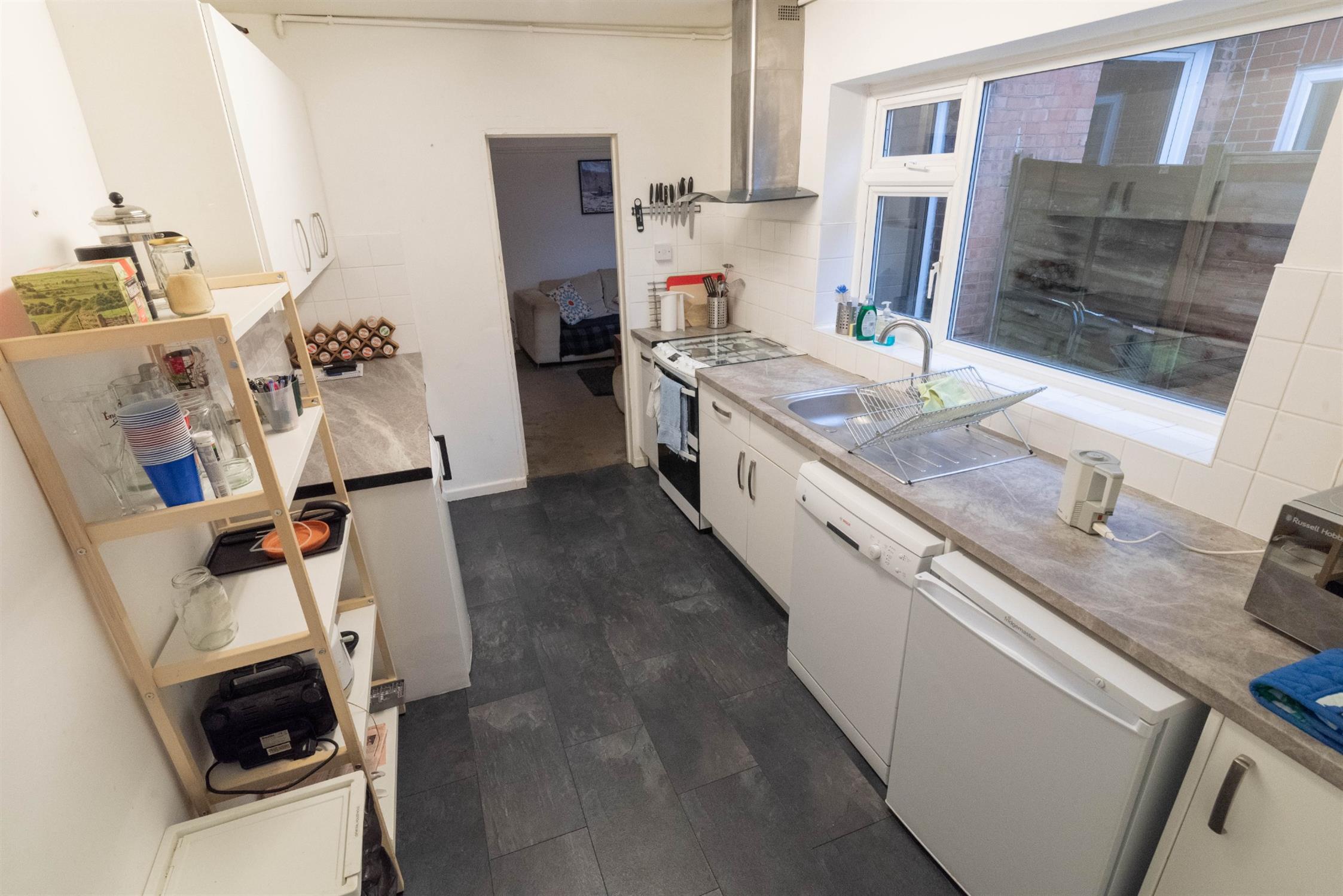 Double glazed window to side aspect. Single drainer sink unit with mixer tap and cupboard under. A range of eye level and base mounted kitchen units with roll top work surface over. Space for cooker with extractor over. Space and plumbing for dishwasher. Space for under counter fridge and freezer. Radiator. Wall mounted boiler. Door to:-