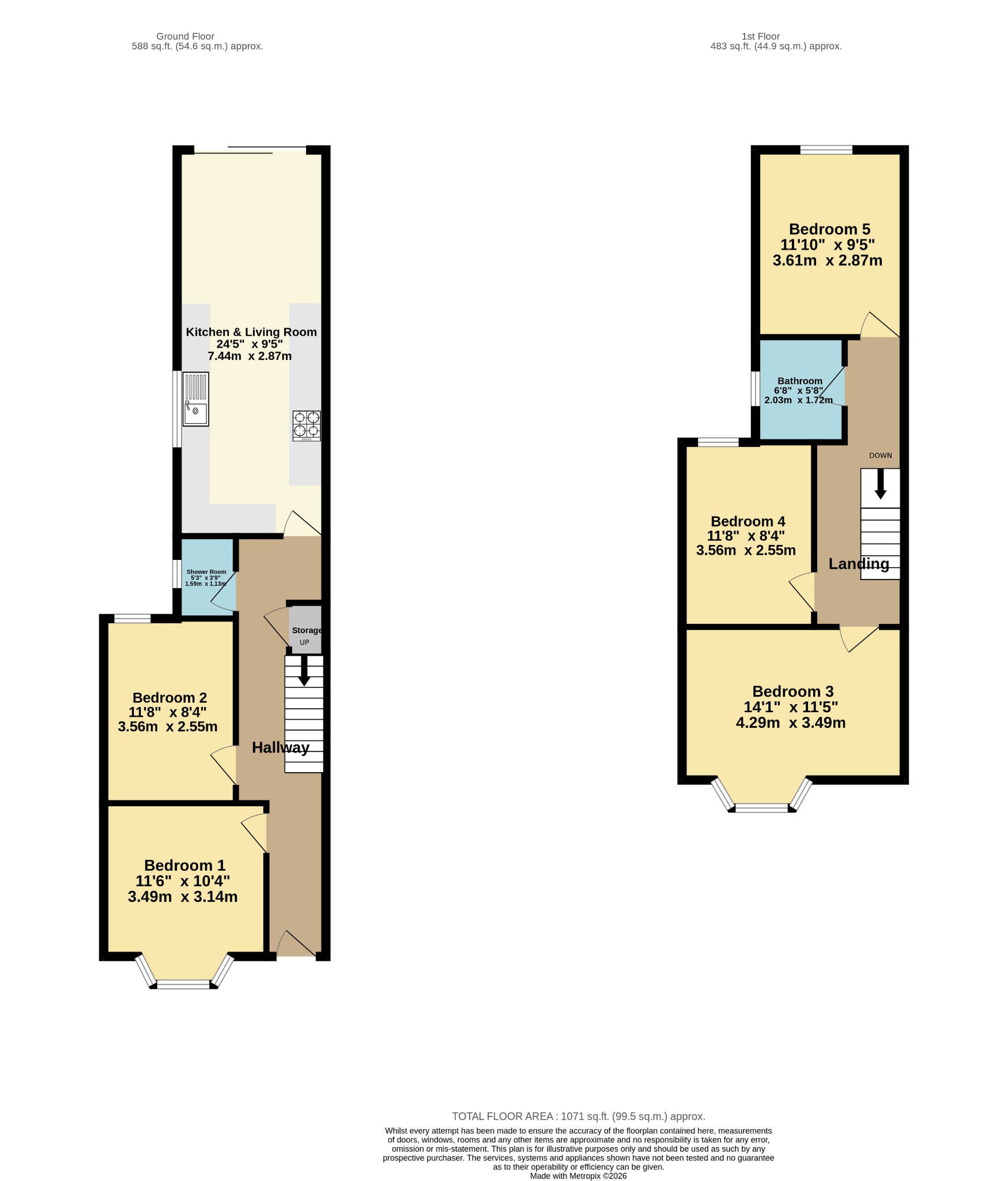 BEDROOM FIVE 11' 10" (3.61m) x 9' 5" (2.87m):