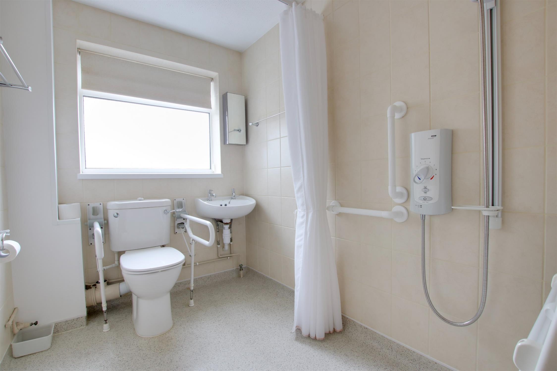 Double glazed window to side elevation. Low level close coupled WC. Wall mounted shower unit. Wash hand basin. Radiator. Tiled walls.