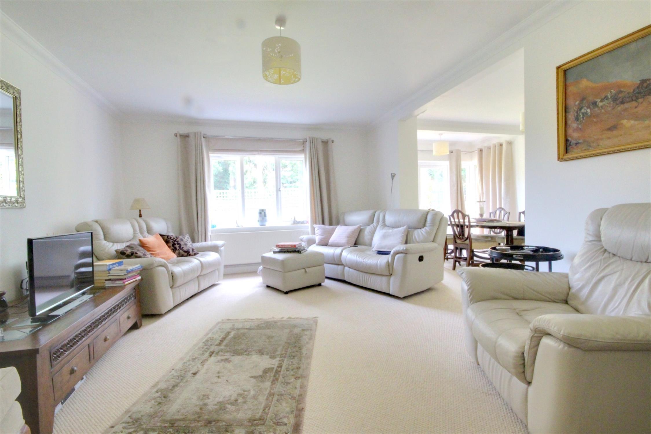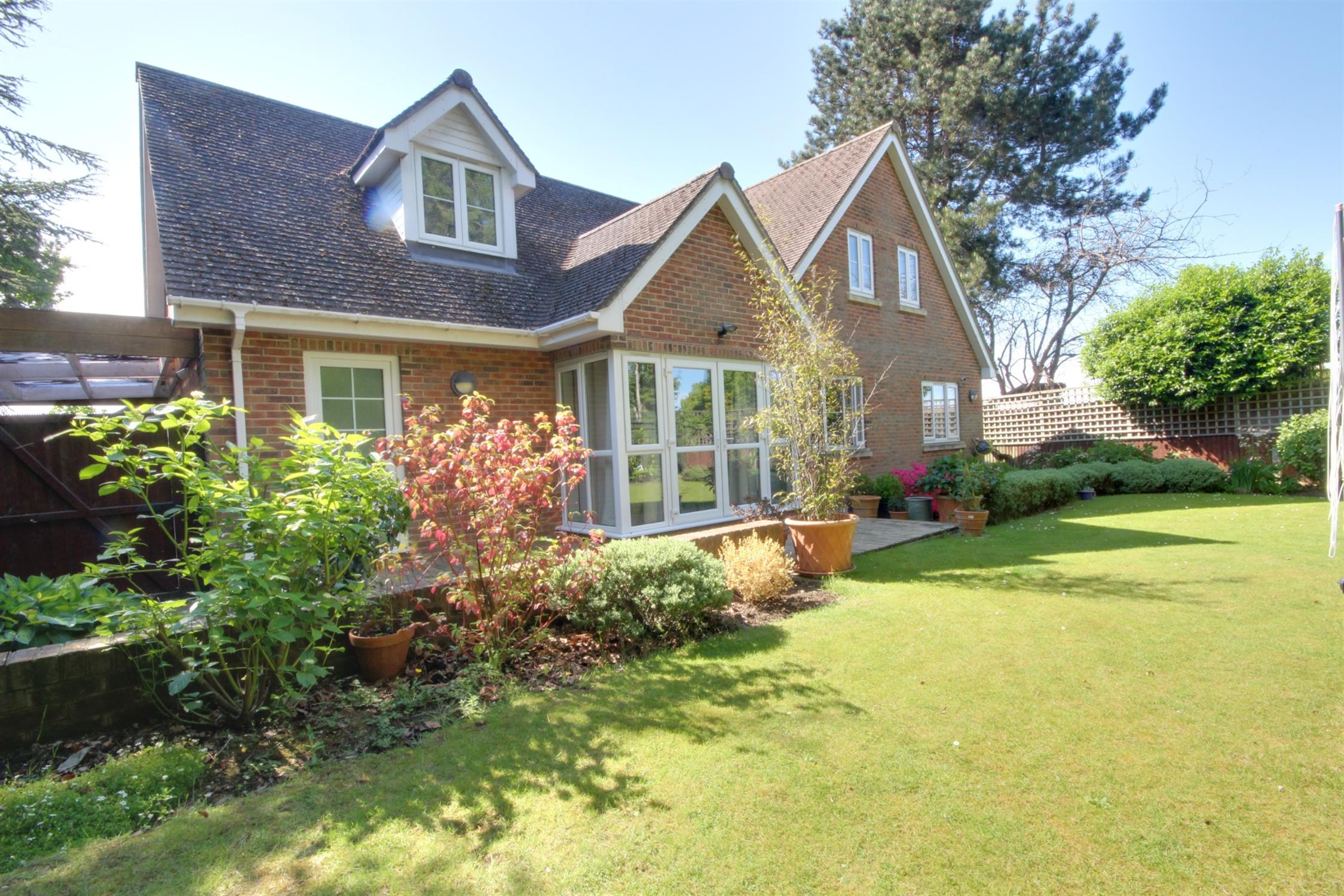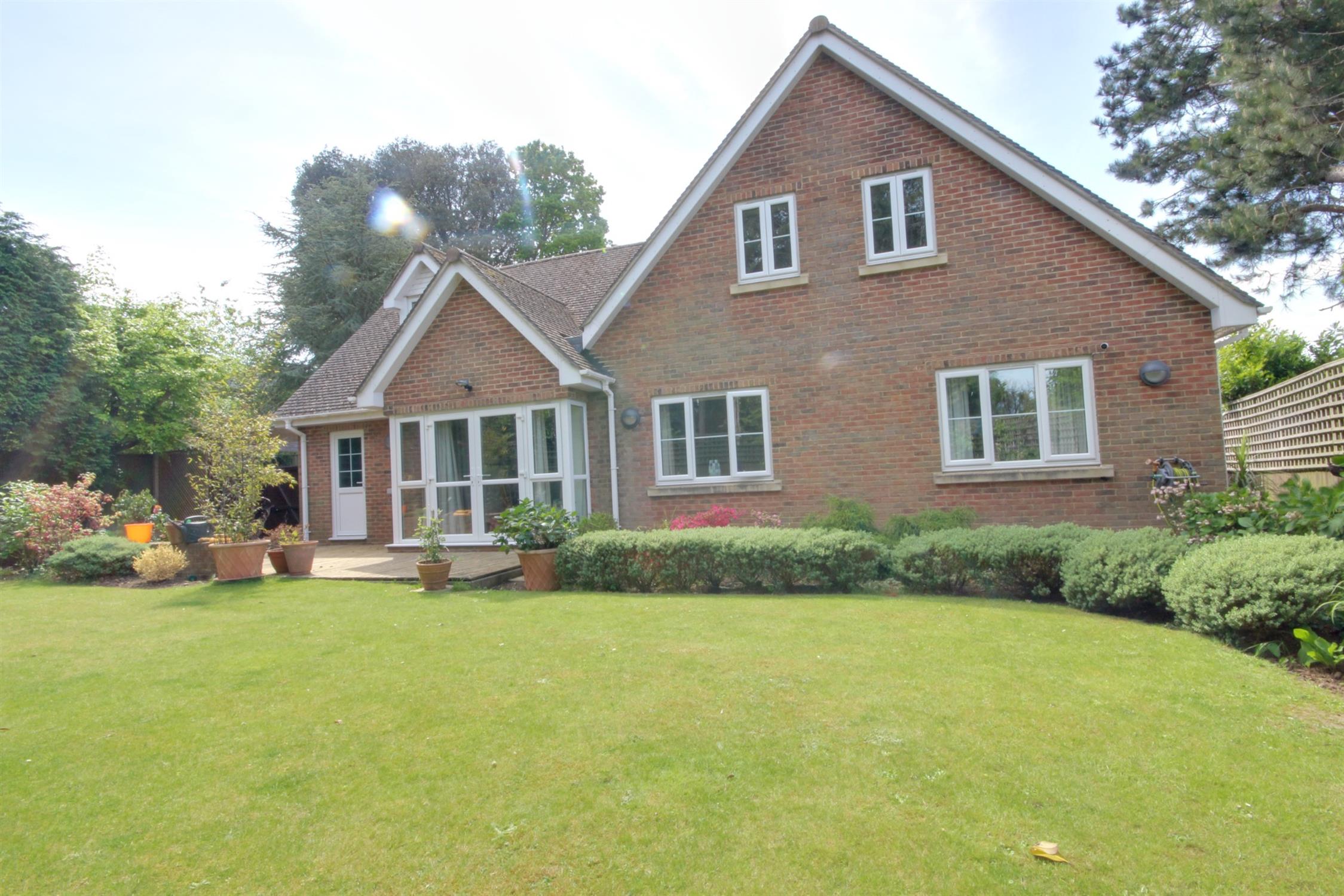 An individual and substantial detached chalet style home set off the road via a private drive with a deceptively spacious and flexible layout set over two floors. The accommodation comprises on the ground floor a large entrance hall with stairs leading to the first floor, a kitchen/breakfast room leading to the utility room, a study, a lounge with an open aspect to the dining room, a guest suite, and a downstairs WC. On the first floor, there are four further bedrooms with one having an en en suite, and a family bathroom.