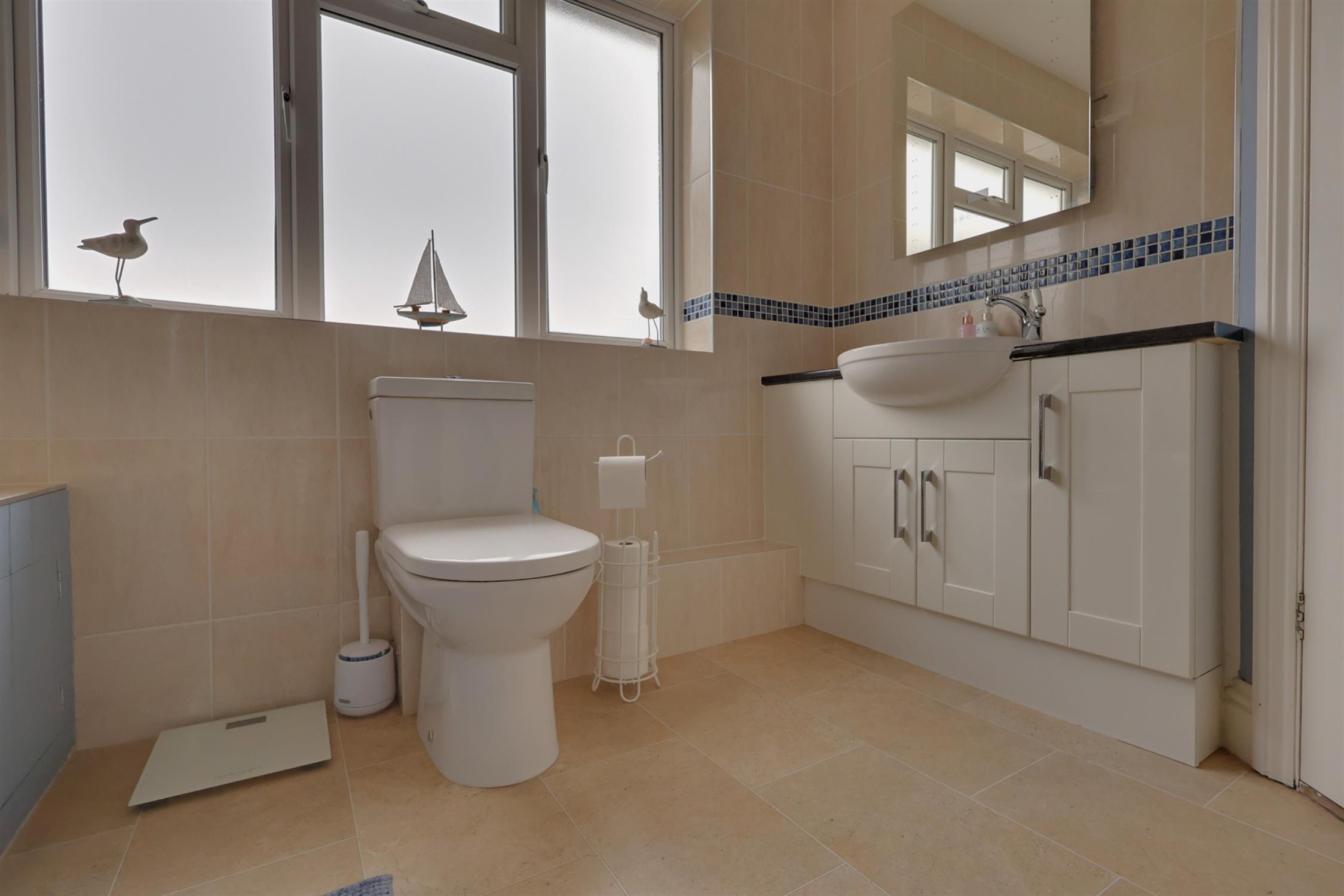 Obscure double glazed window to side elevation. low level W.C. Pedestal wash hand basin. Radiator.
