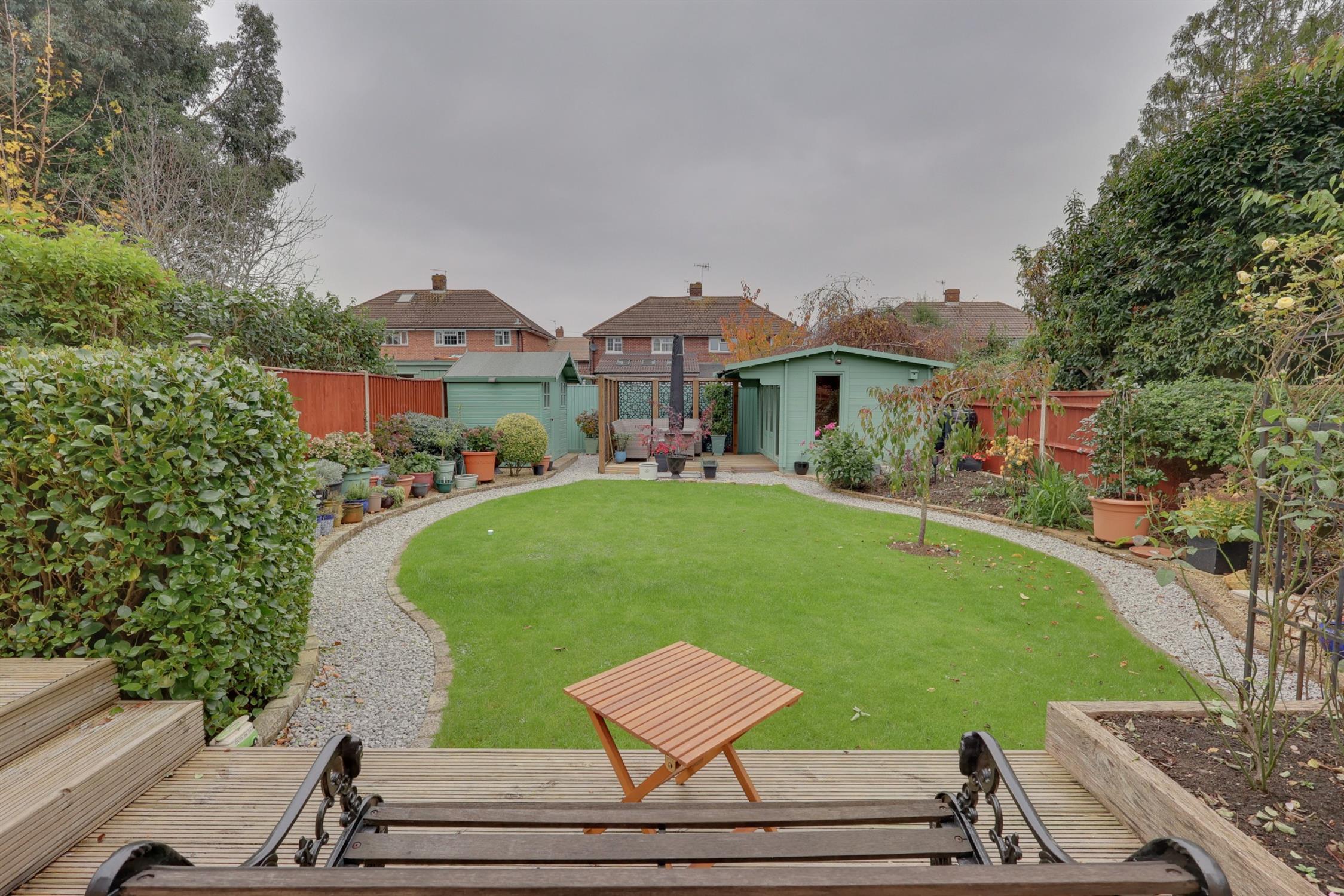 Block pave drive offering off road parking for several vehicles. Access to the garage. Side pedestrian gated access to rear garden. Side access to kitchen/utility. Mature shrubs and borders with partial low hedging.