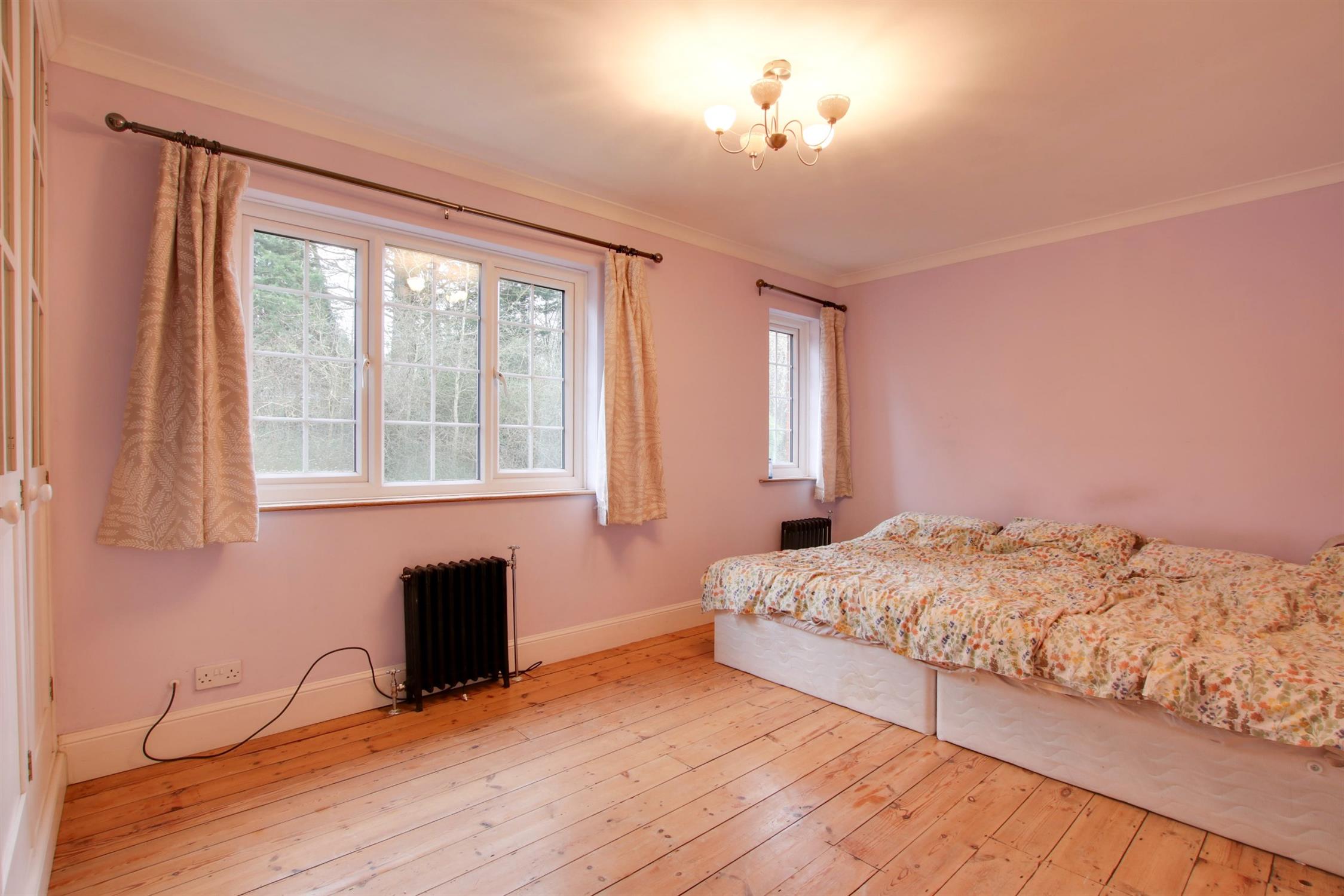 Two double glazed windows to the front aspect. Smooth and coved ceiling. Fitted triple wardrobe. Two vintage style radiators. Exposed floorboards.