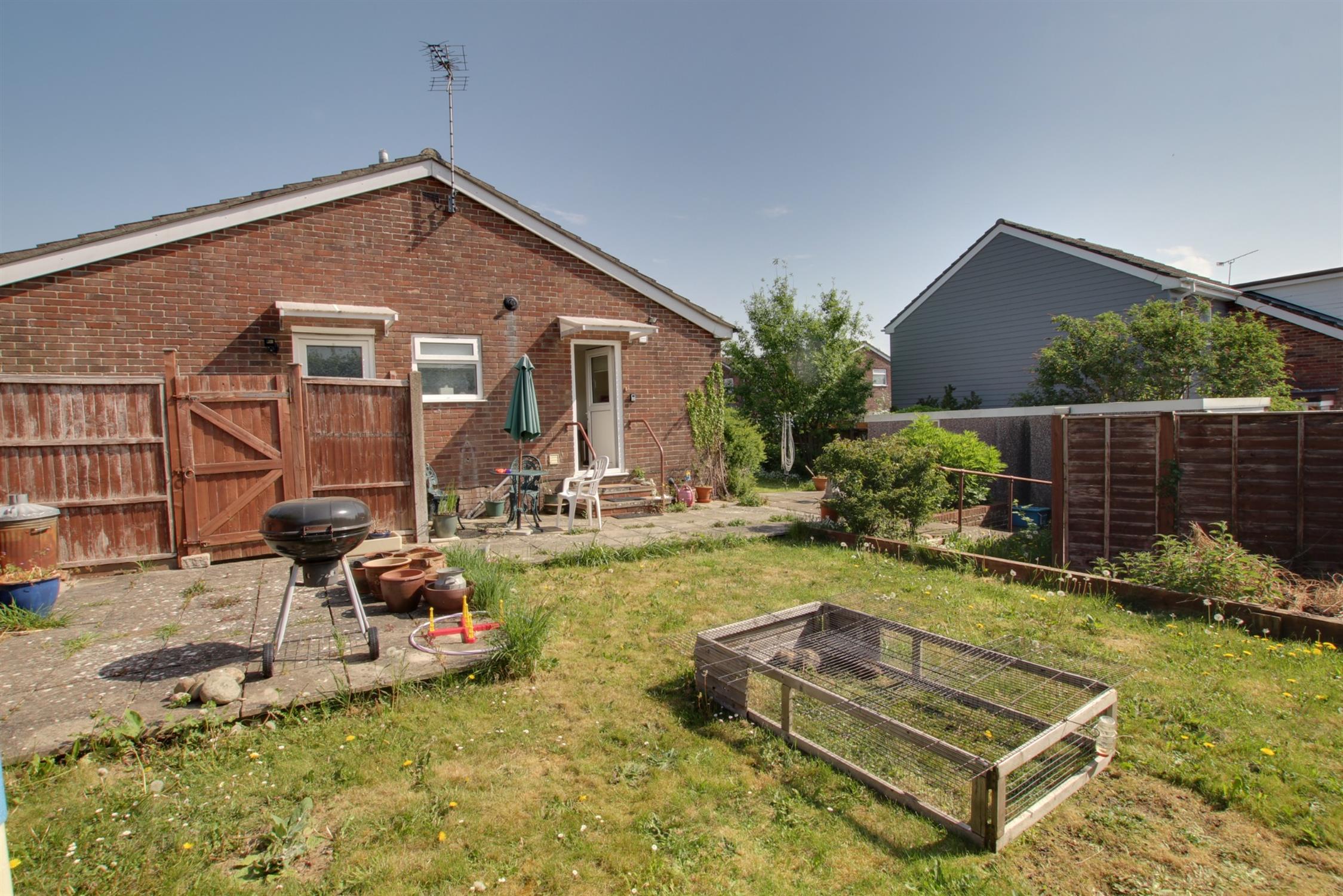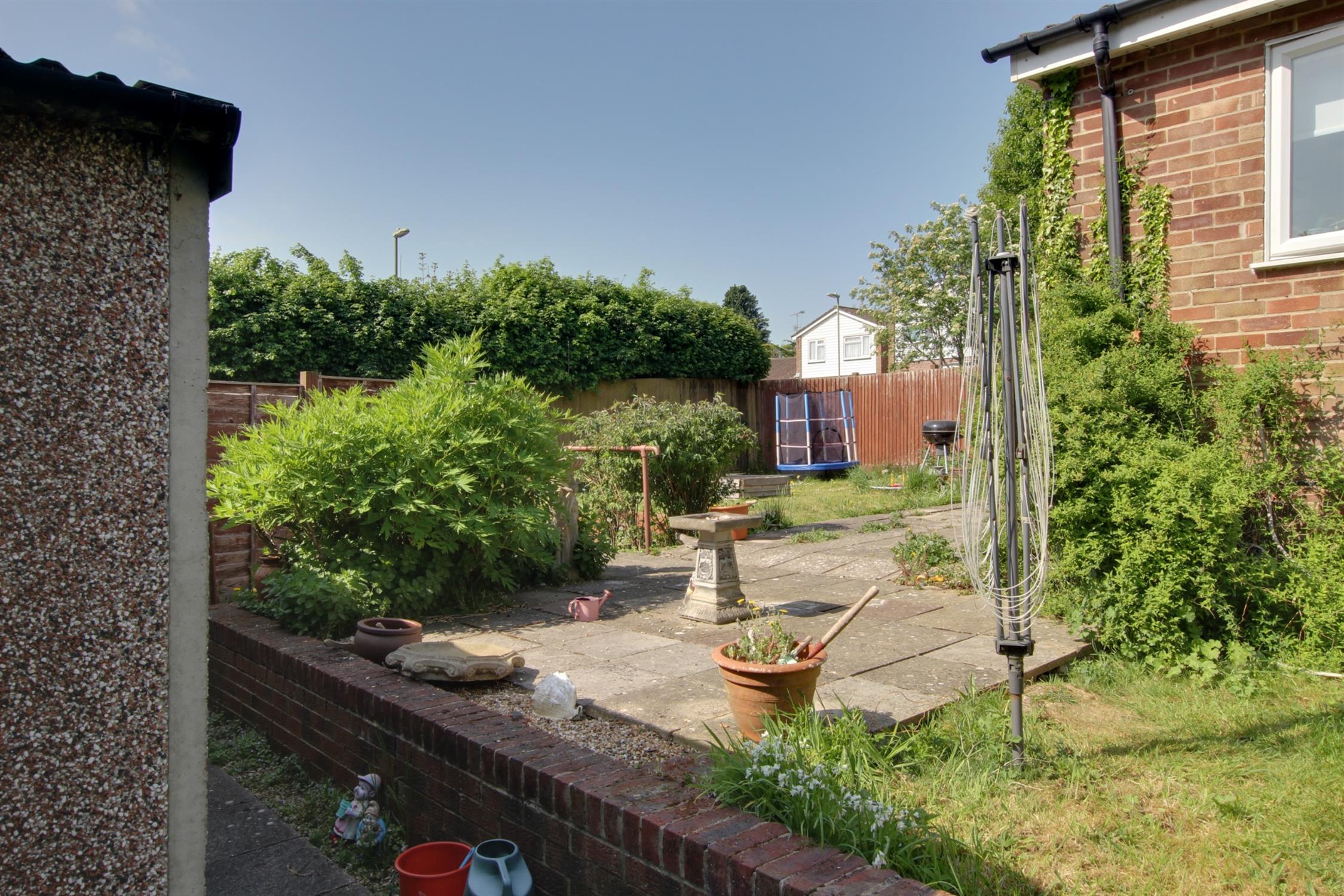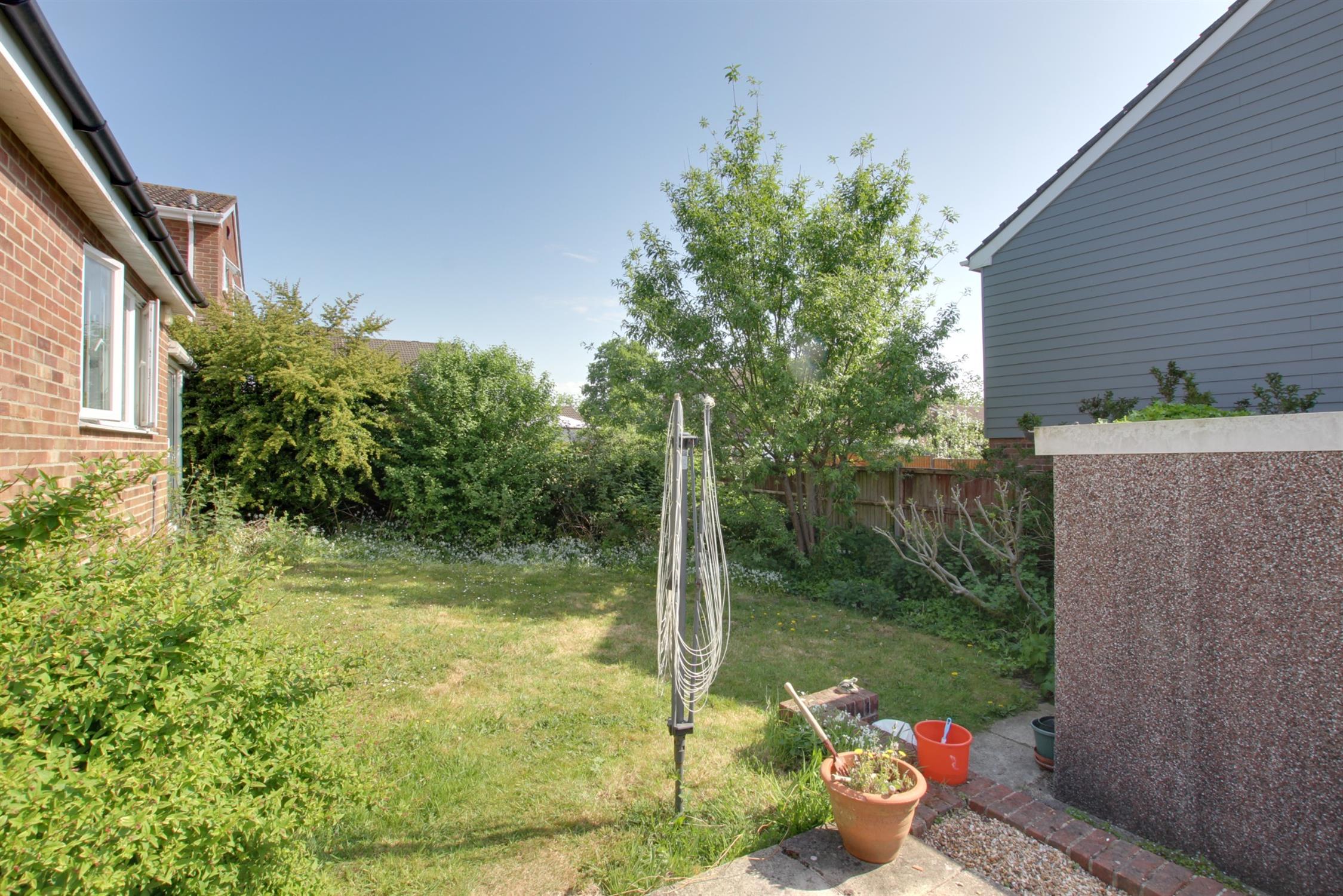 Corner plot with a generous sized wrap around garden. From the kitchen are two steps with a handrail down to the side with a southerly aspect side garden area. The rear portion of the garden is mainly laid to lawn with a mature shrub and tree border and views of Windmill Hill. Access to garage via rear door.