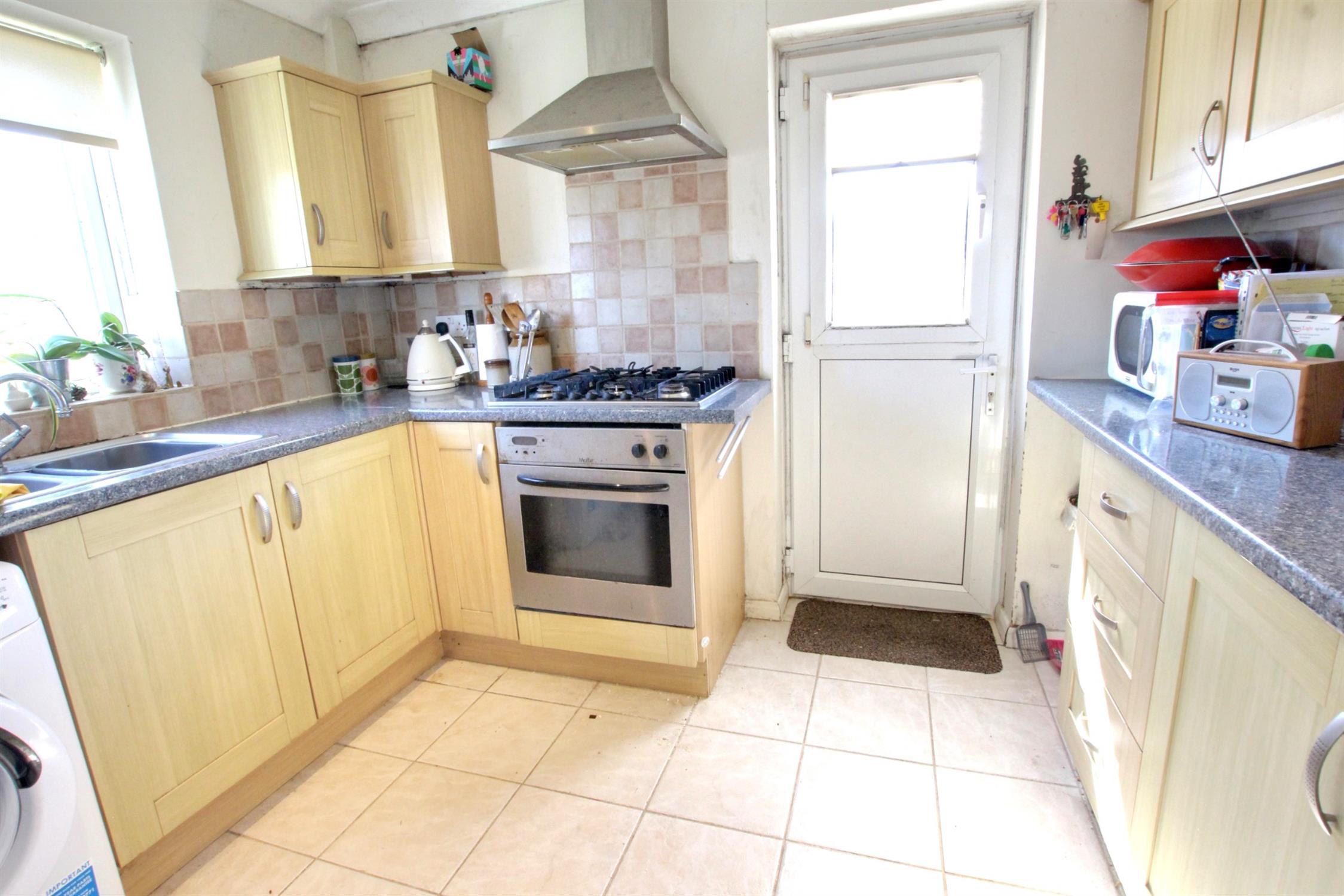 Upvc double glazed window to the rear overlooking the garden patio. Sink with mixer tap, integrated electric oven with gas hob and over head hood extraction, space and plumbing for a washing machine and slimline dishwasher, space and power for upright fridge/freezer, smooth skimmed ceiling with spotlighting.