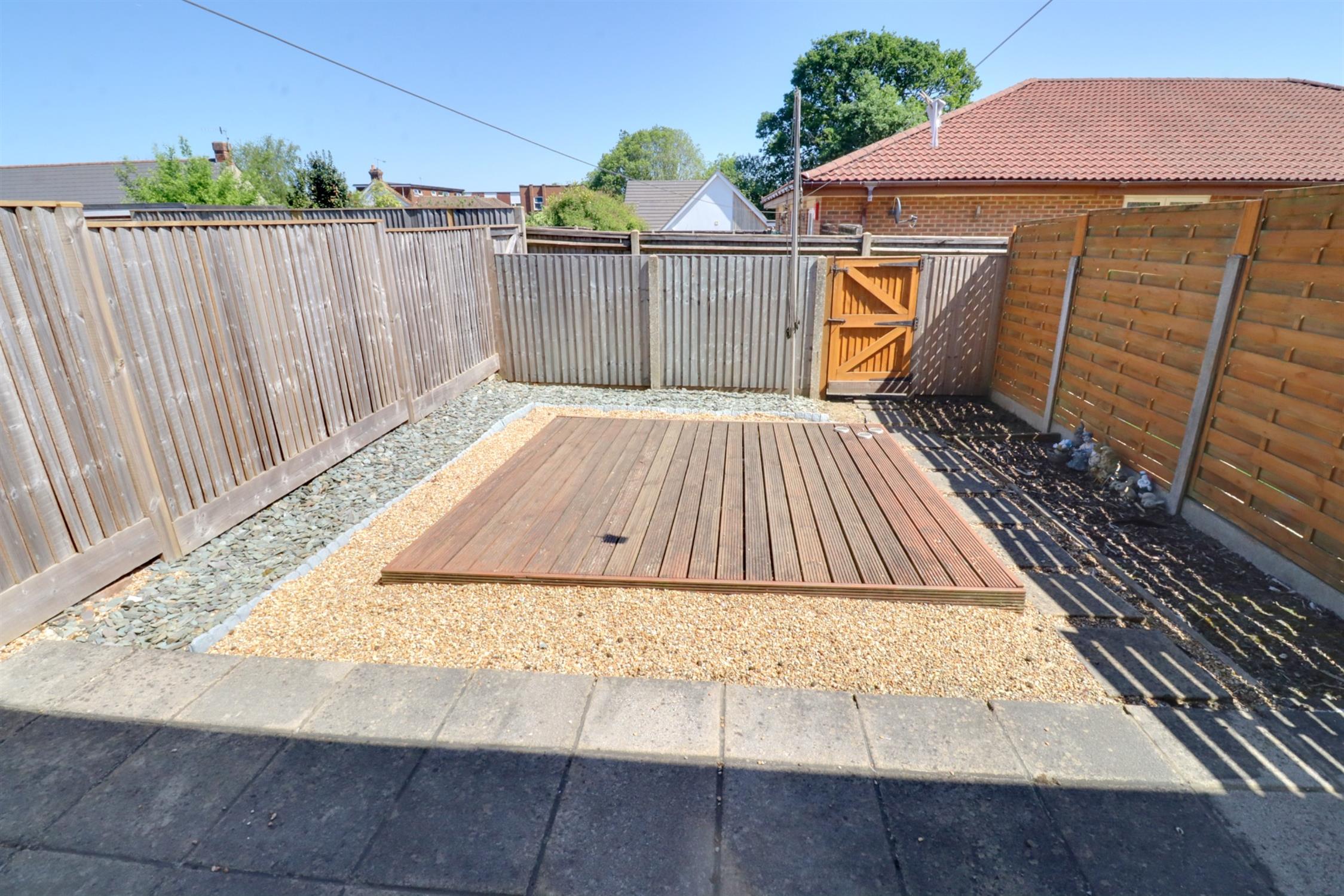 Close board and timber fence panel enclosed, low maintenance with paved patio, timber decking, pea-shingled borders, pedestrian rear gate.