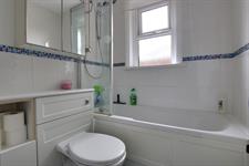 Carpeted. Shower cubicle. Low level W.C and basin. Extractor fan. Heated towel rail. Obscure double-glazed window to front aspect.