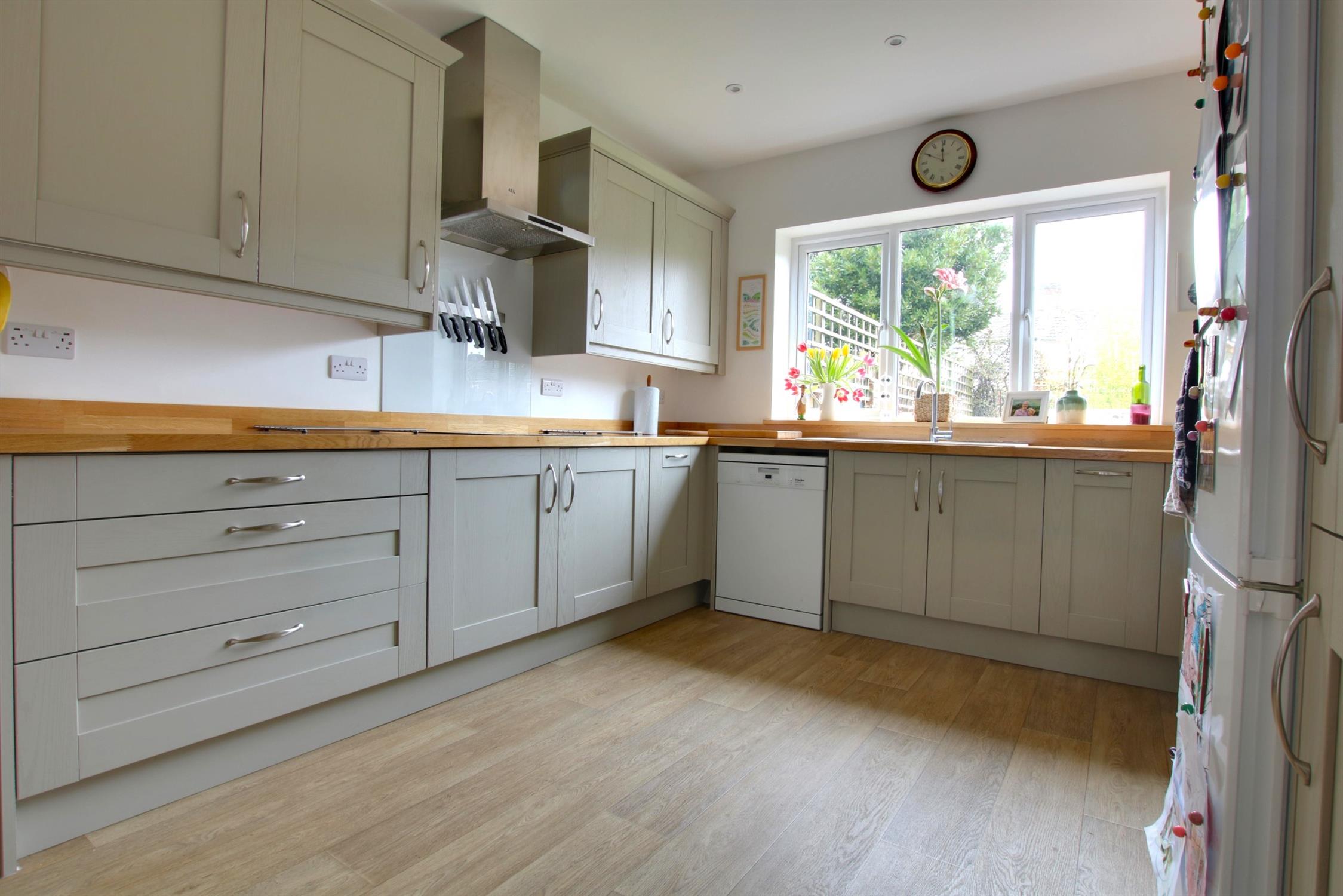 Kitchen comprises matching wall and base units with under counter LED lighting. Integrated oven and induction hob. Space for dishwasher and fridge-freezer. Inset sink with drainer. Cupboard housing combination boiler. Double-glazed window to rear aspect.