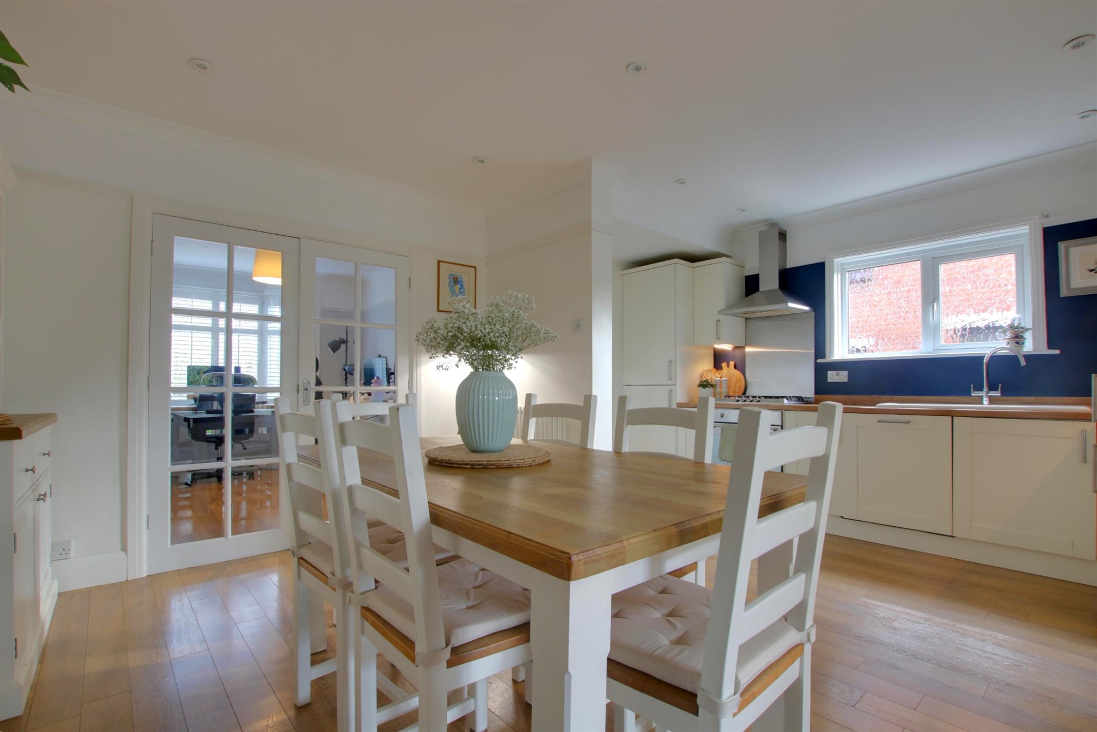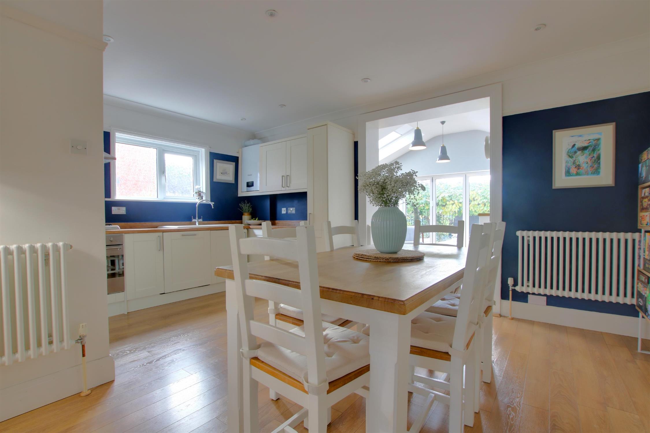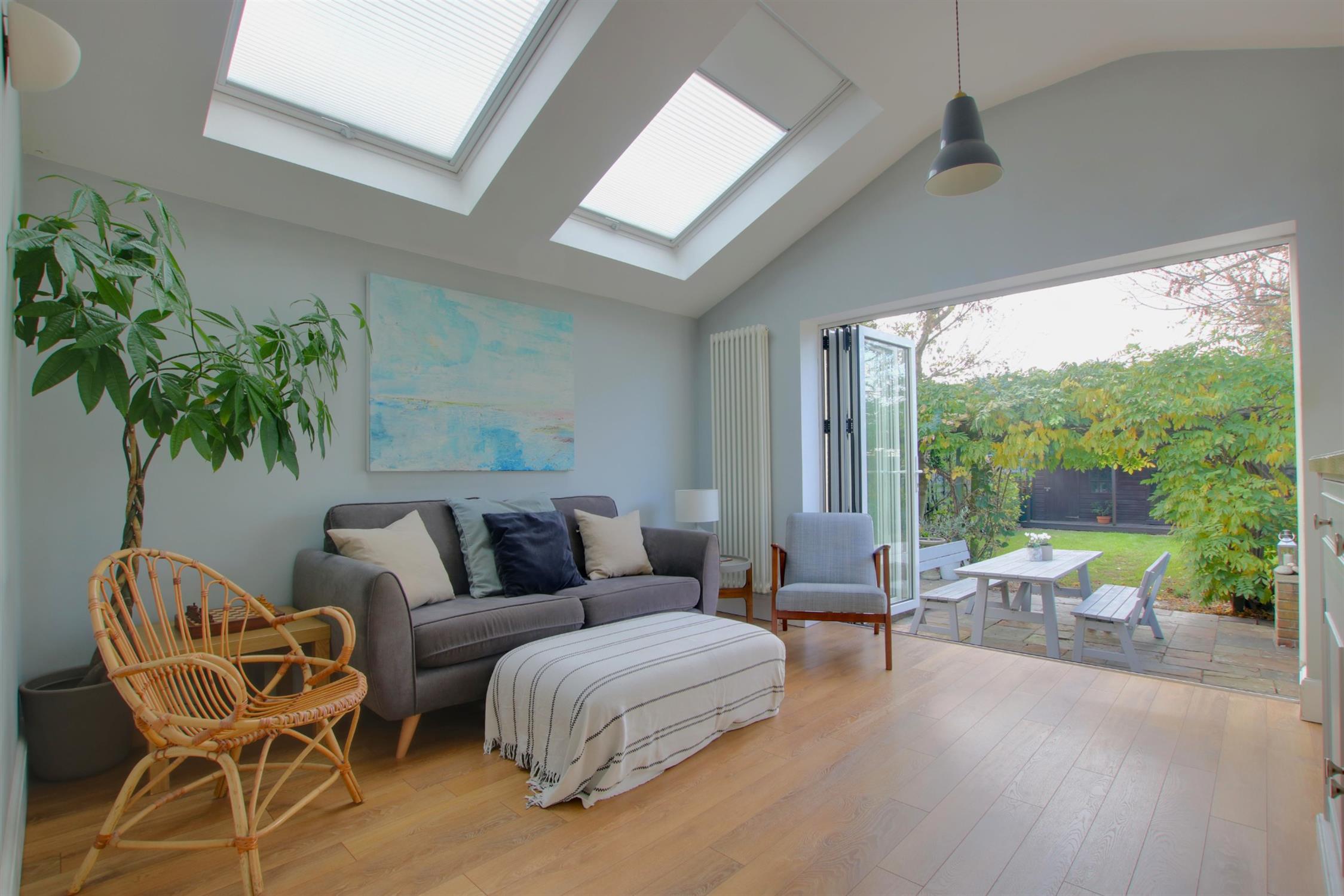 Laminate flooring. Bi-fold doors leading to garden. Two skylights. Tall standing radiator.
