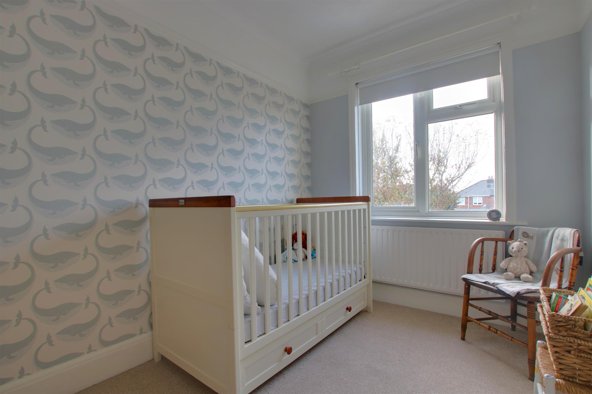 Carpeted. Deep skirting boards and coving. Double-glazed window to rear aspect. Radiator.