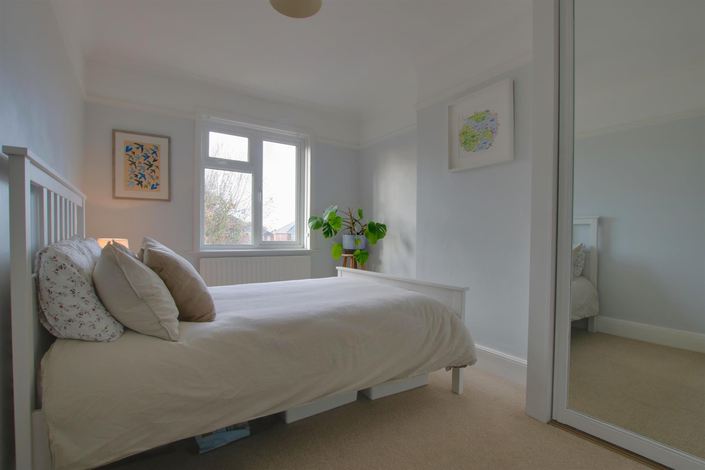 Carpeted. Deep skirting board and coving. Picture rails. Built in wardrobe. Double-glazed window to rear aspect. Radiator.
