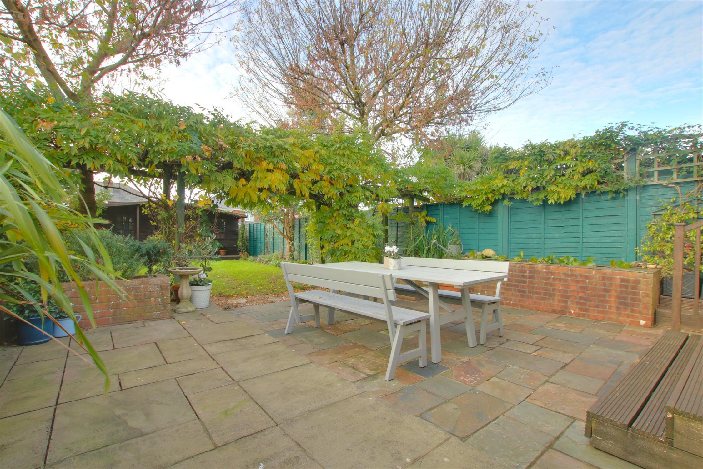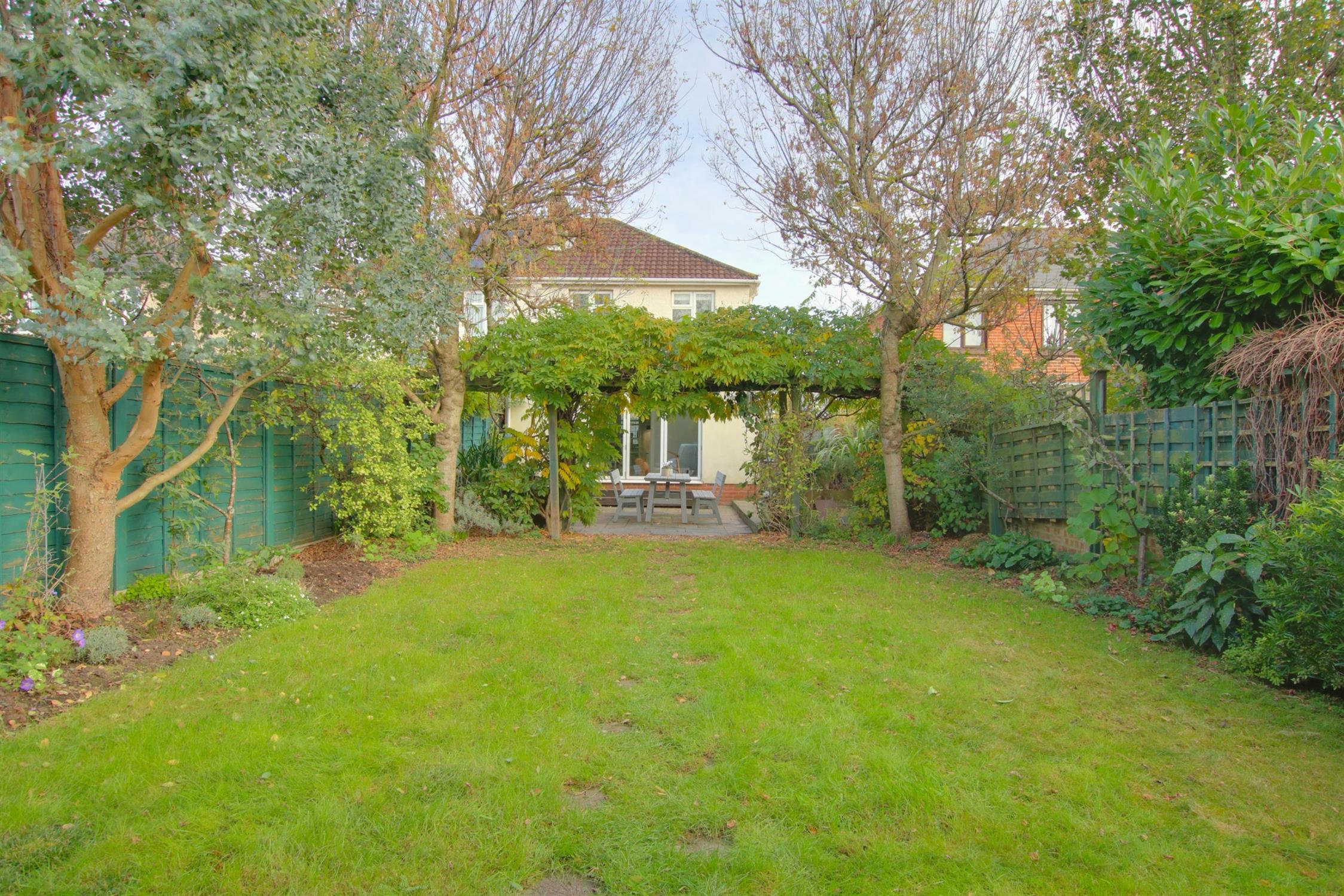 The rear garden is west facing and has a paved patio area with raised borders and a pond. Double gates to the side providing side access. Outside tap. A wooden archway which is covered with beautiful wisteria leads into the rest of the garden which mainly laid to lawn with shrub borders and two maple trees.