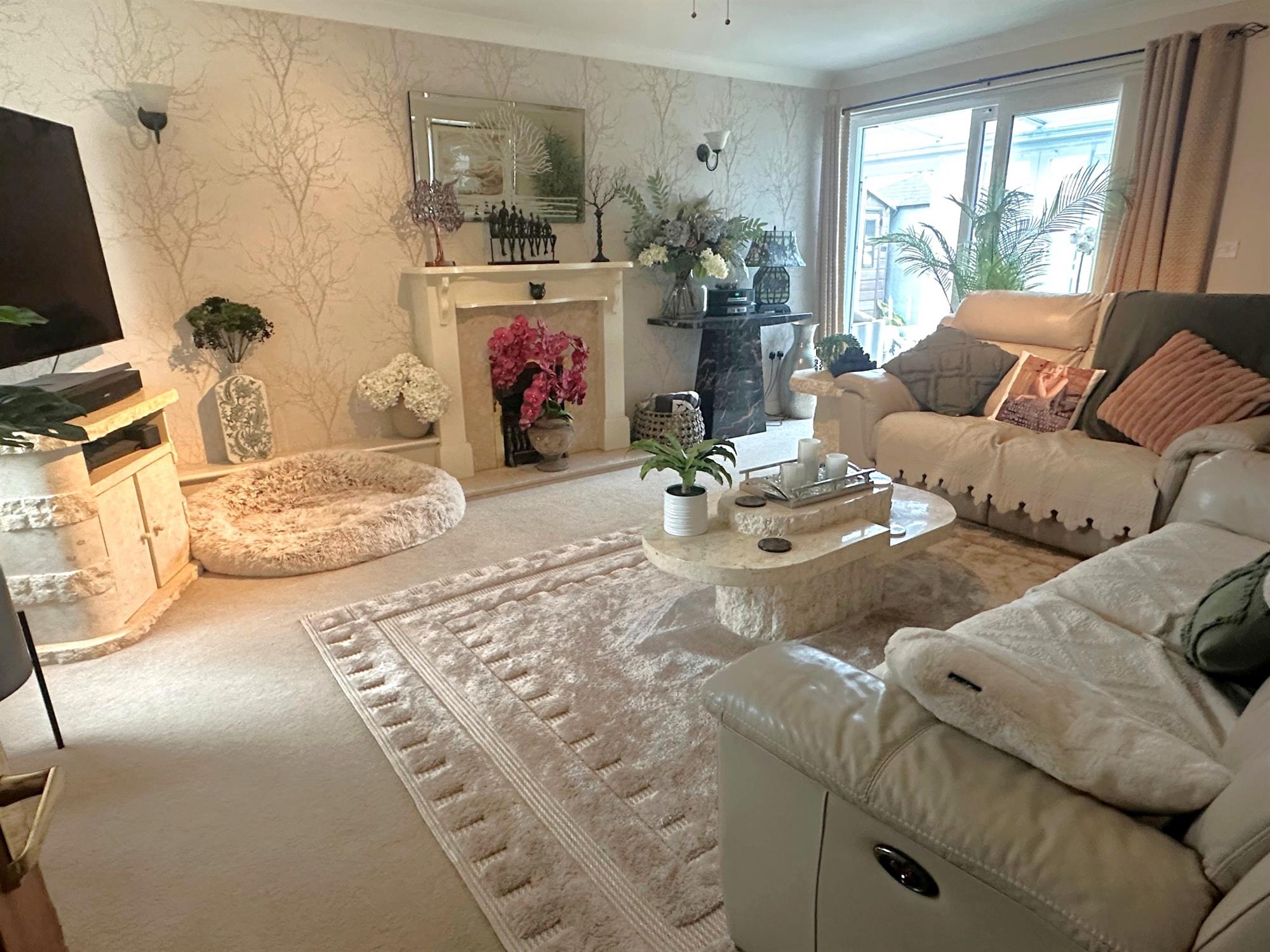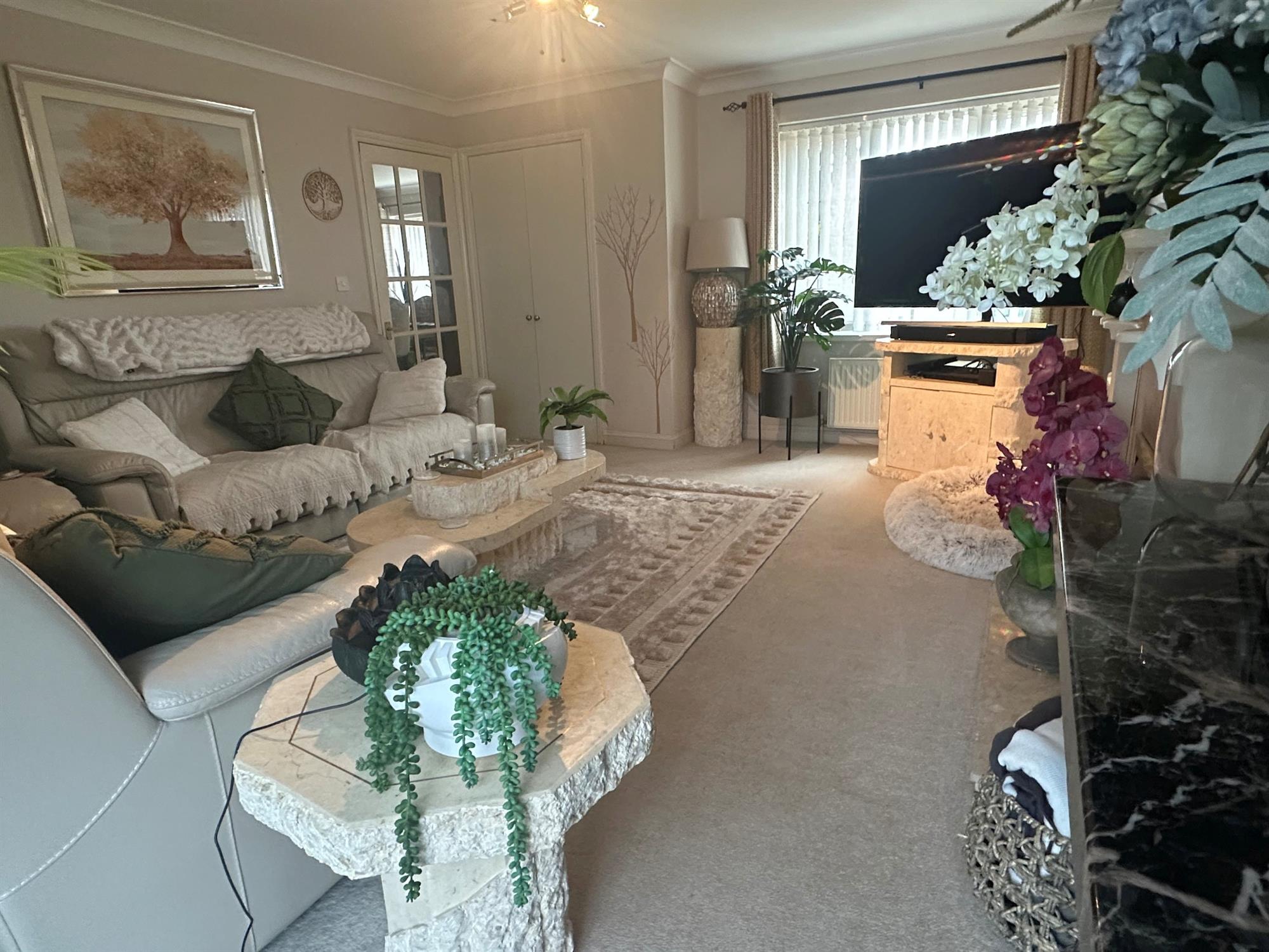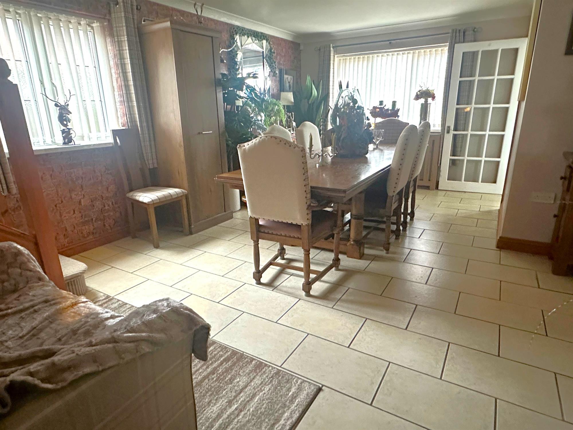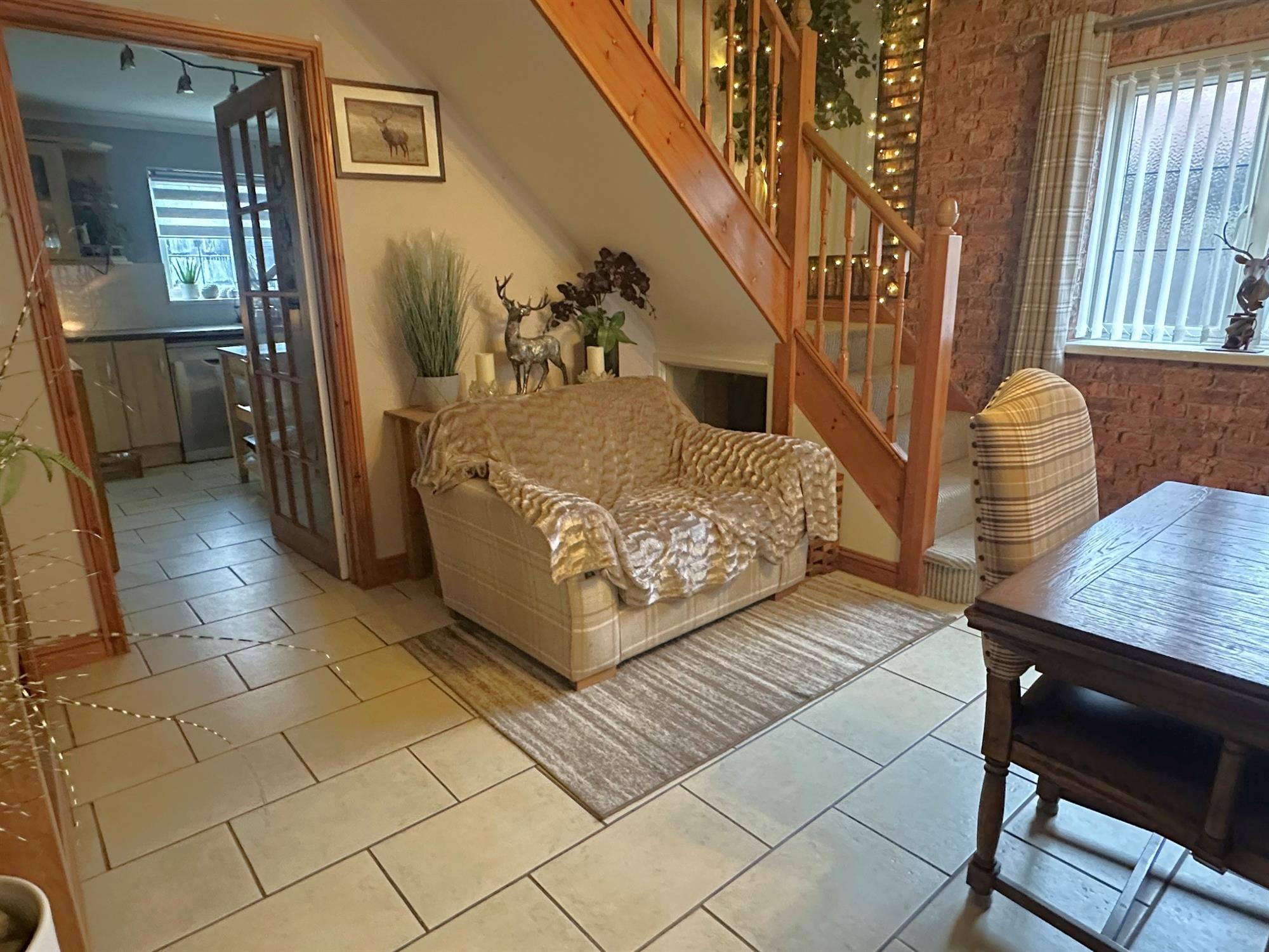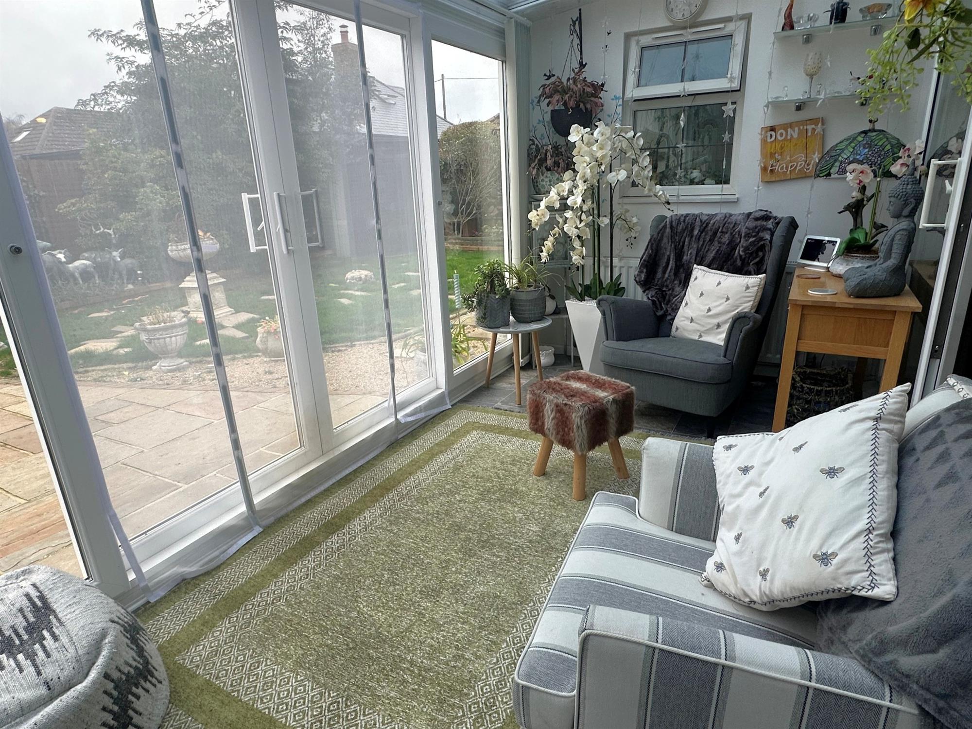 Of UPVC construction. Tile effect flooring. Radiator. Double doors to garage. Sliding doors to rear garden.