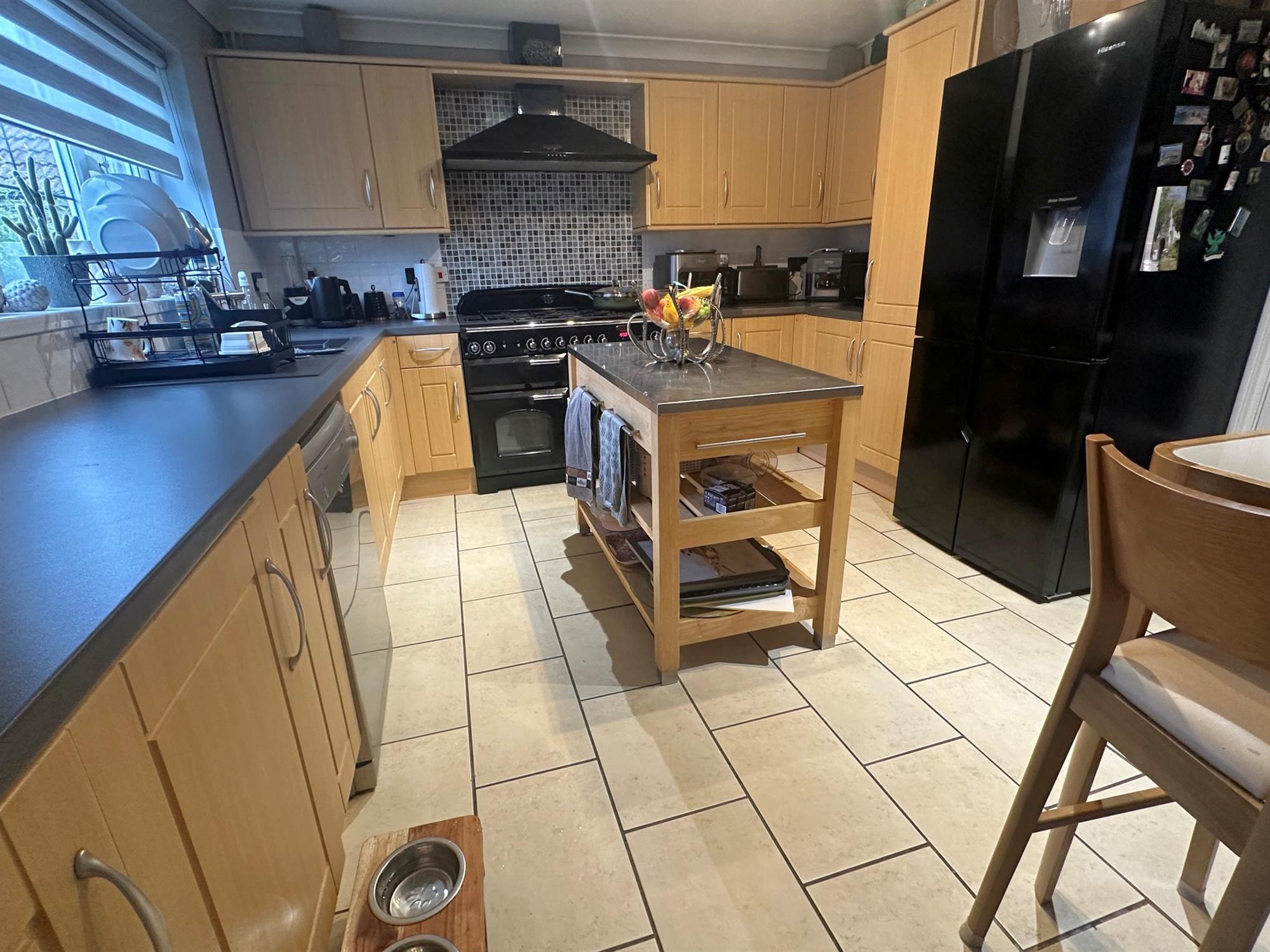Window to rear. Fitted with a comprehensive range of base and wall units with working surfaces over and tiling to splashbacks. One and a half bowl sink unit with mixer tap and shower attachment. Space for range style cooker. Space for fridge freezer. Space and plumbing for dishwasher. Ceramic tiled flooring. Radiator. Door into: