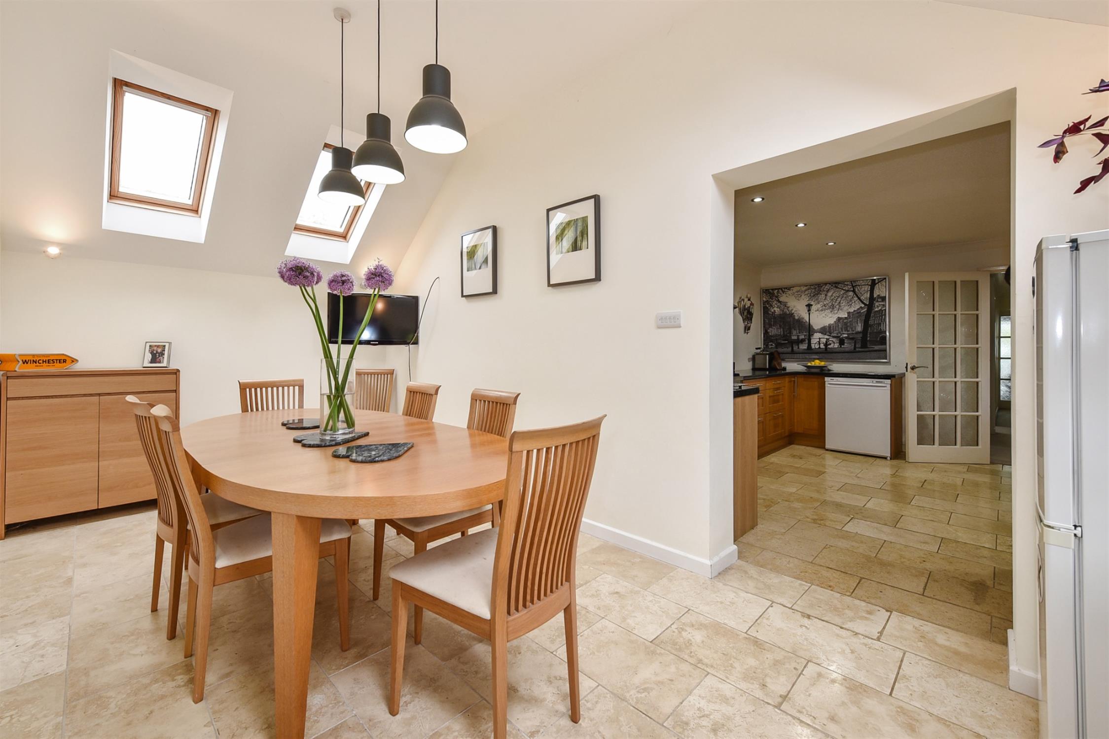 The front door leads through to a generous central hall with stairs rising to the first floor and access to all ground floor accommodation. The kitchen is an excellent size with a wealth of storage in both low and eye-level units. An archway leads through to a dining room with skylights in the pitch. There are two reception rooms currently being used as large studies, however they could also well-suit as fifth and sixth bedrooms. The living room is bright and airy with a large conservatory adjacent and it leads through to a family room currently used as a gym. Both this family room and the conservatory have double doors that lead through to the garden. Finishing off this floor is a utility room, WC, and cloakroom.