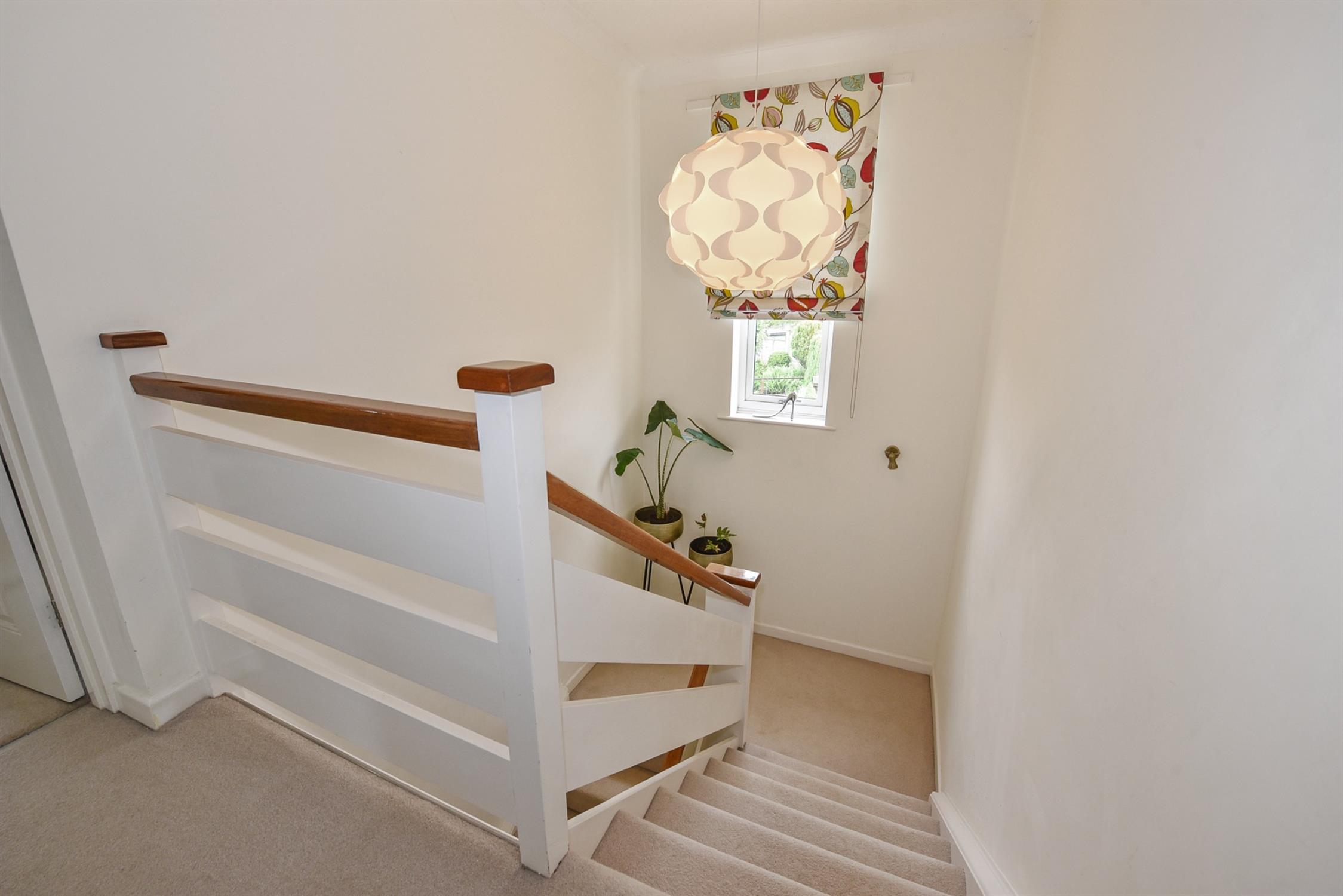 Upstairs, the dual aspect master bedroom is a terrific size and offers fitted storage and a good size ensuite. There is also a guest suite equipped with a modern ensuite and ample storage. Bedrooms three and four are doubles and have triangular oriel windows. Bedroom three further offers built in storage. The family bathroom can also be found on this floor. It is a white suite fitted with shower over bath, toilet, and handbasin, and there is a built-in storage cupboard on the landing.
