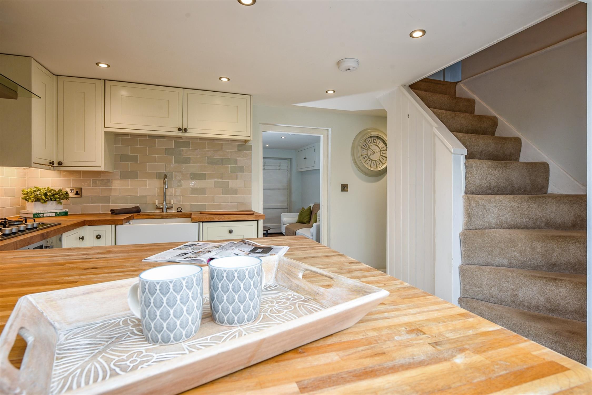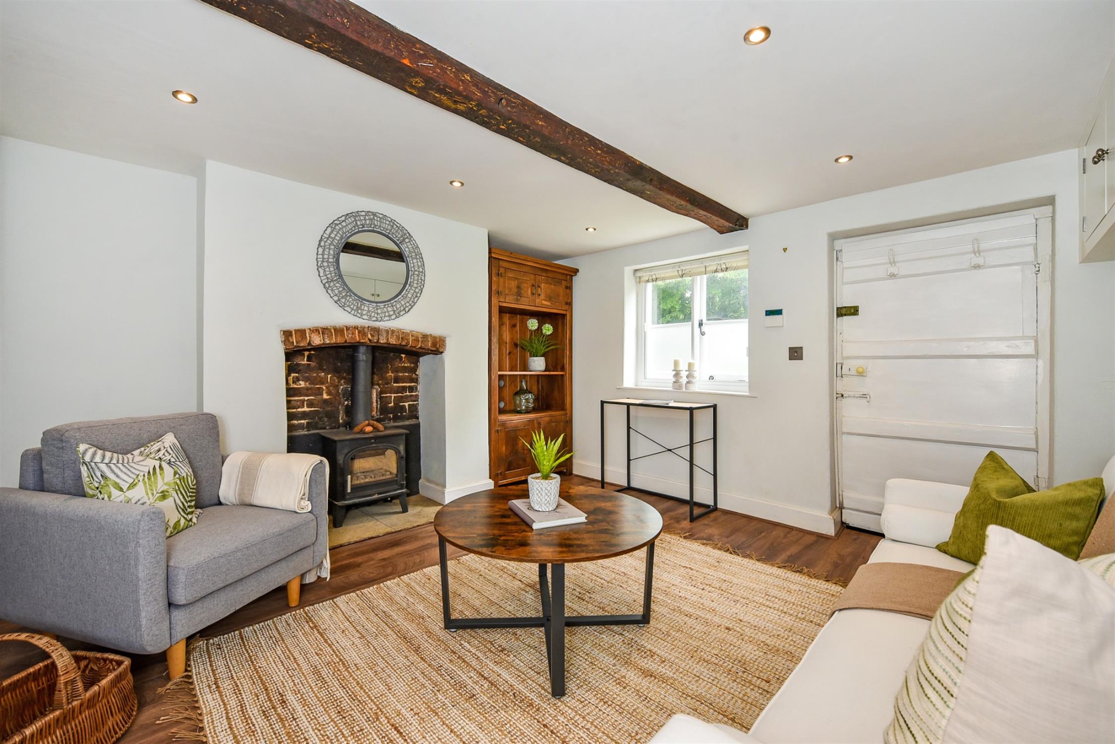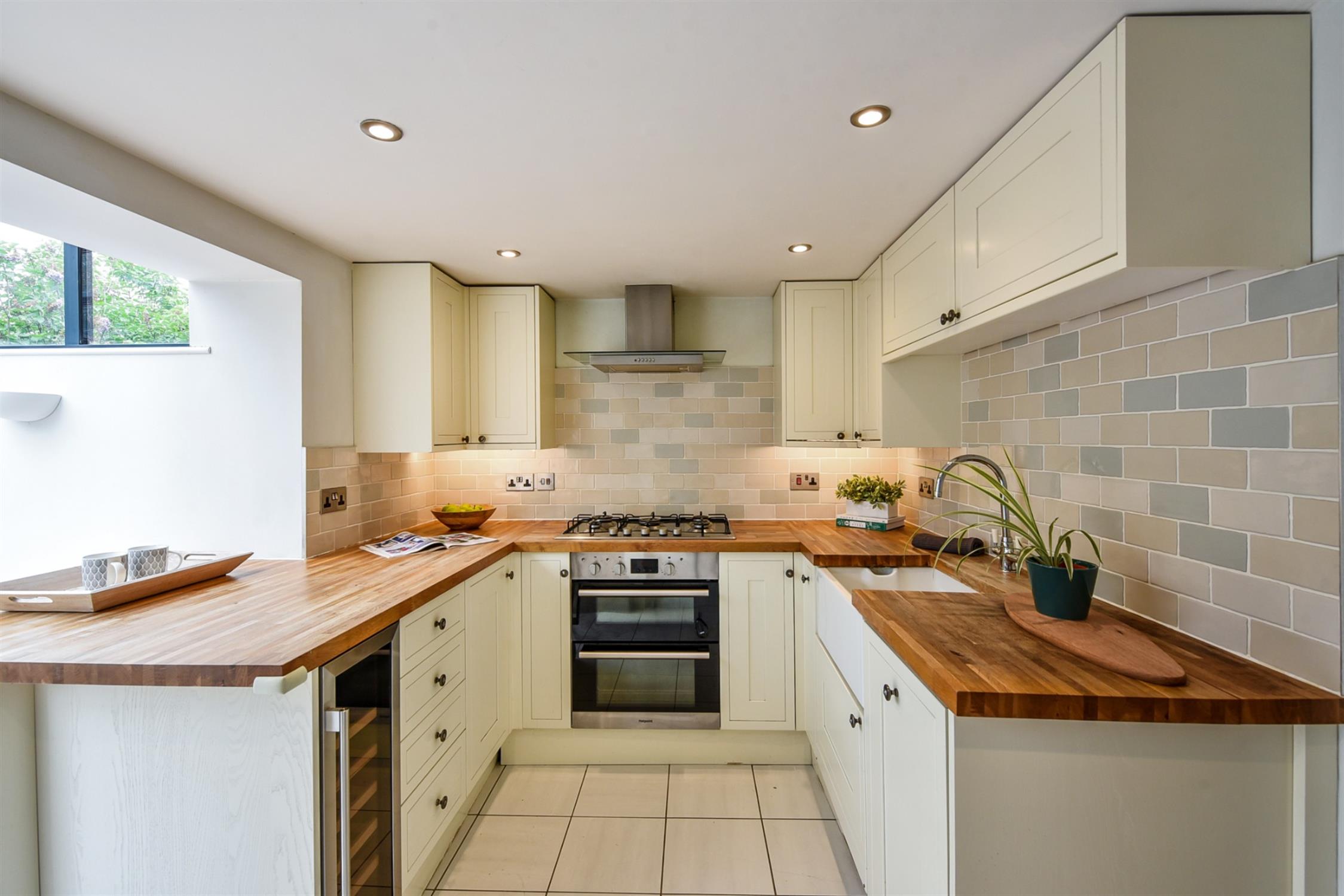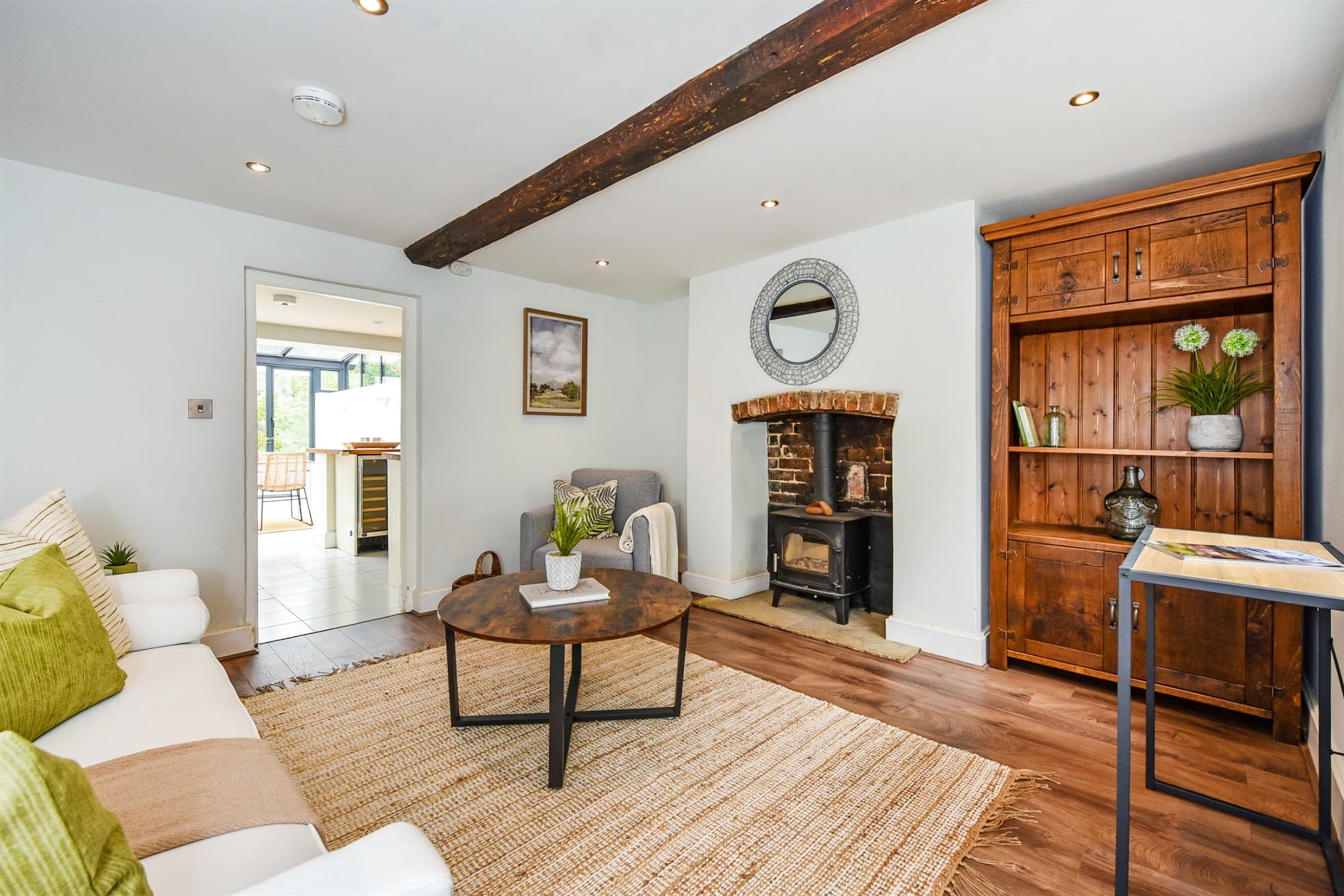 To the front of the property, there is a pretty front garden and a pickett fence. The front door opens to the warm and cosy living room which is fitted with a wood burner with an exposed brick mantle and stone hearth. The social kitchen is the heart of the home and is a terrific space for entertaining. Large format windows, French doors to the garden and a glass roof with anthracite edging allow plenty of natural light into the space and views over the garden to the river beyond. The newly fitted kitchen offers a range of eye and low-level shaker style units with integrated appliances including double oven, gas rings and a wine fridge, and there is also a breakfast bar. Completing the ground floor is a utility room/WC.