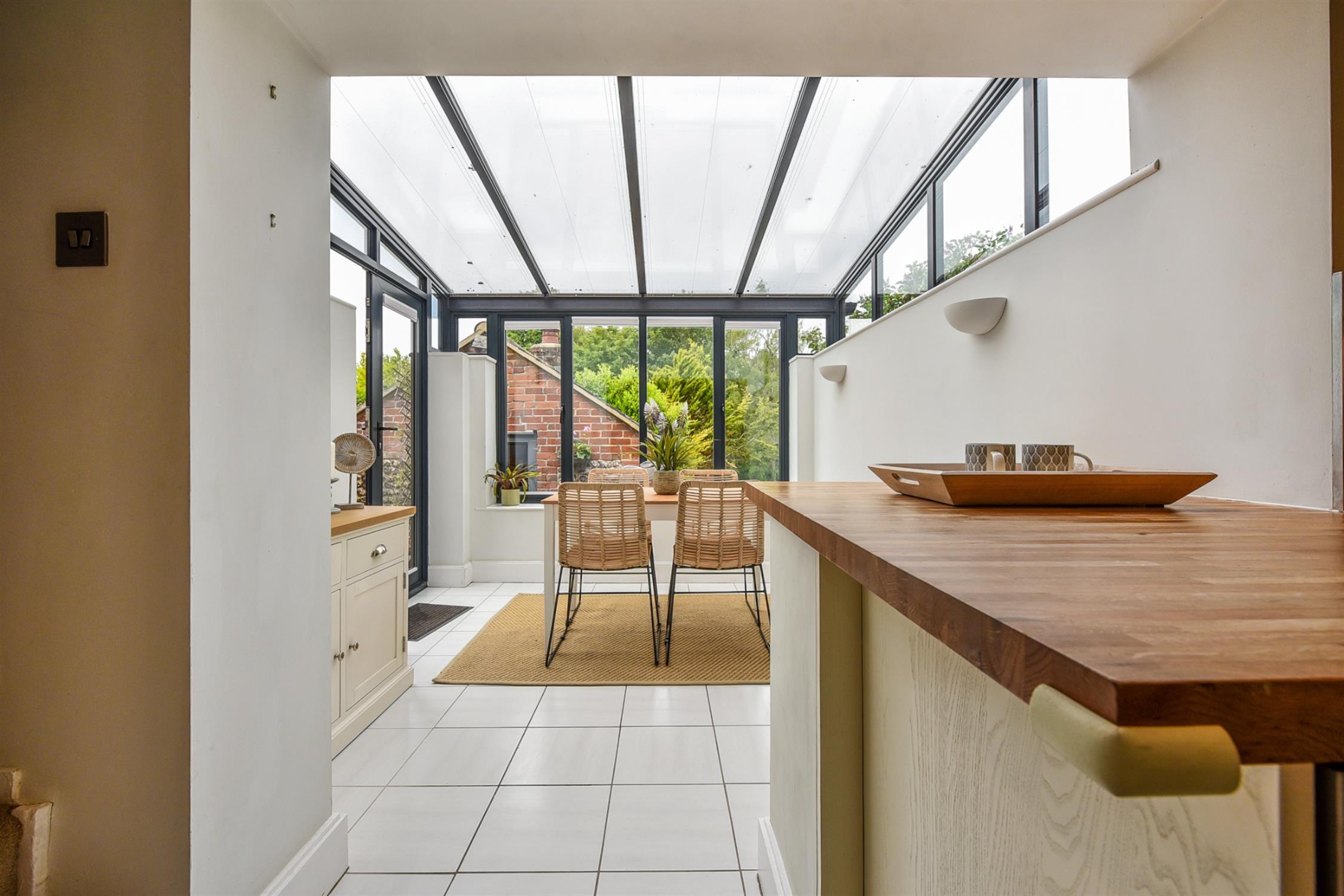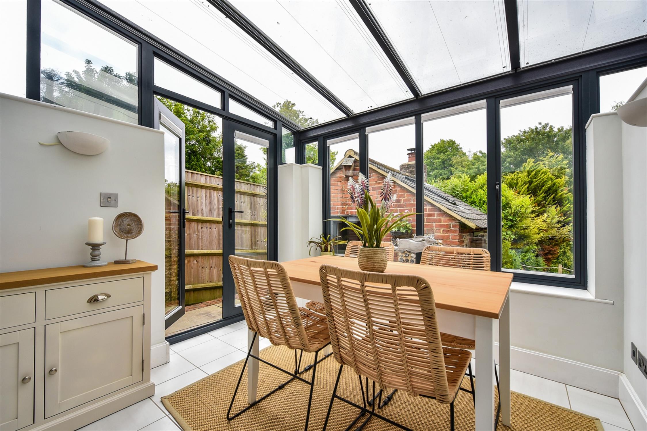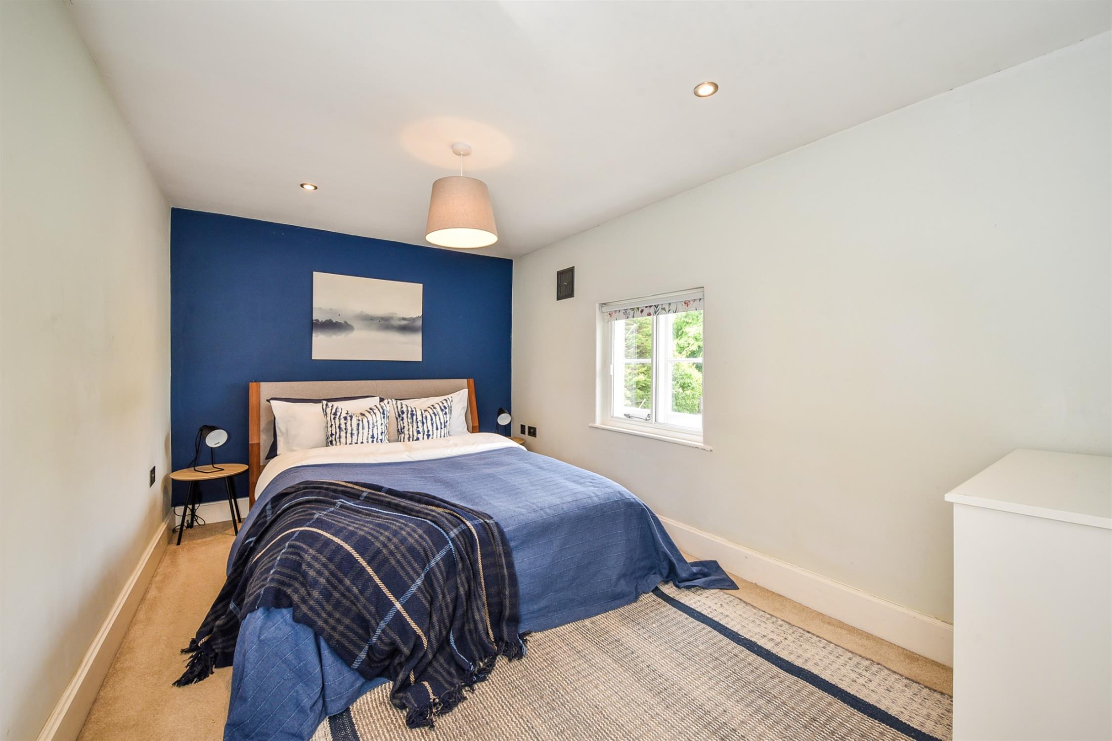 To the front of the property, there is a pretty front garden and a pickett fence. The front door opens to the warm and cosy living room which is fitted with a wood burner with an exposed brick mantle and stone hearth. The social kitchen is the heart of the home and is a terrific space for entertaining. Large format windows, French doors to the garden and a glass roof with anthracite edging allow plenty of natural light into the space and views over the garden to the river beyond. The newly fitted kitchen offers a range of eye and low-level shaker style units with integrated appliances including double oven, gas rings and a wine fridge, and there is also a breakfast bar. Completing the ground floor is a utility room/WC.