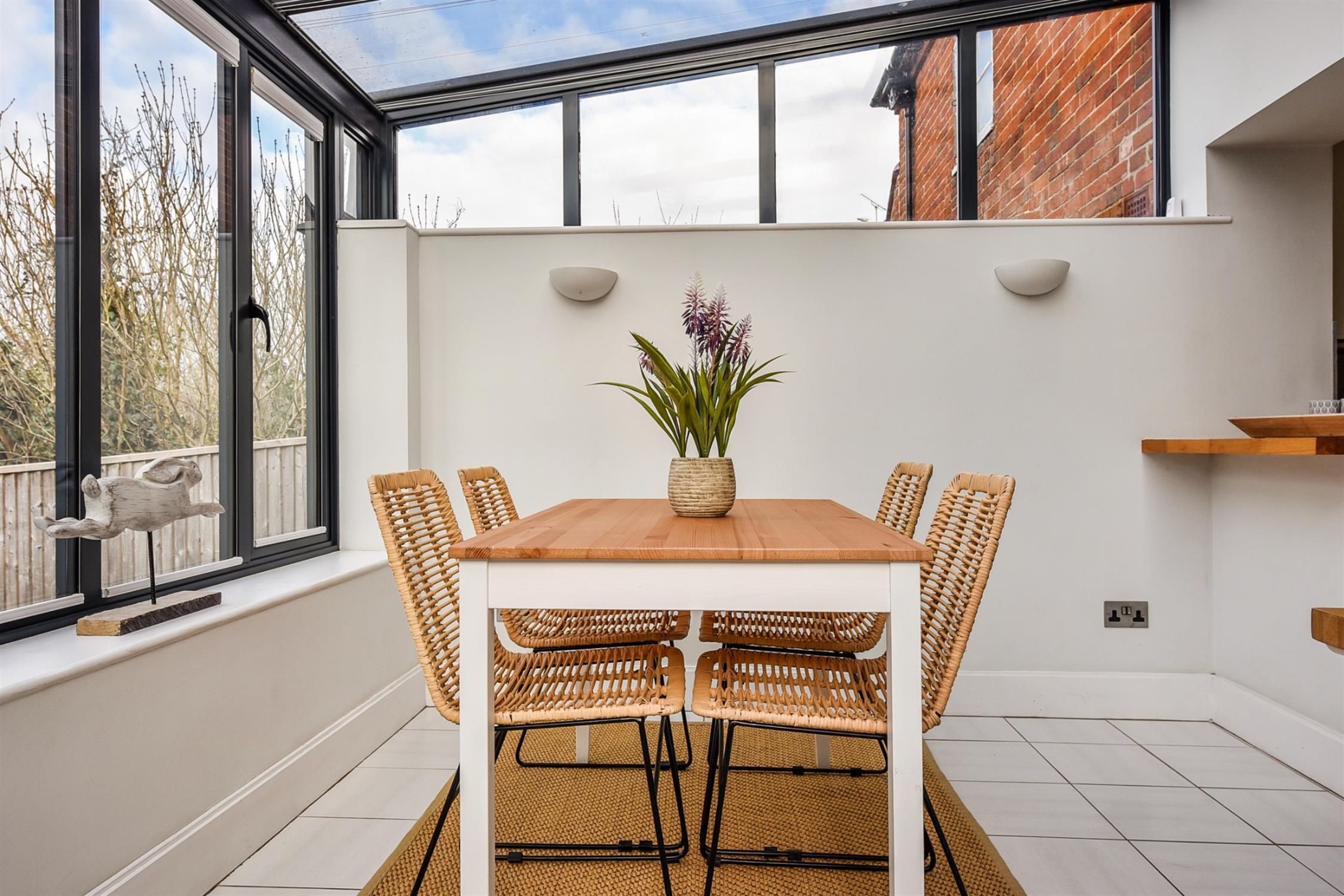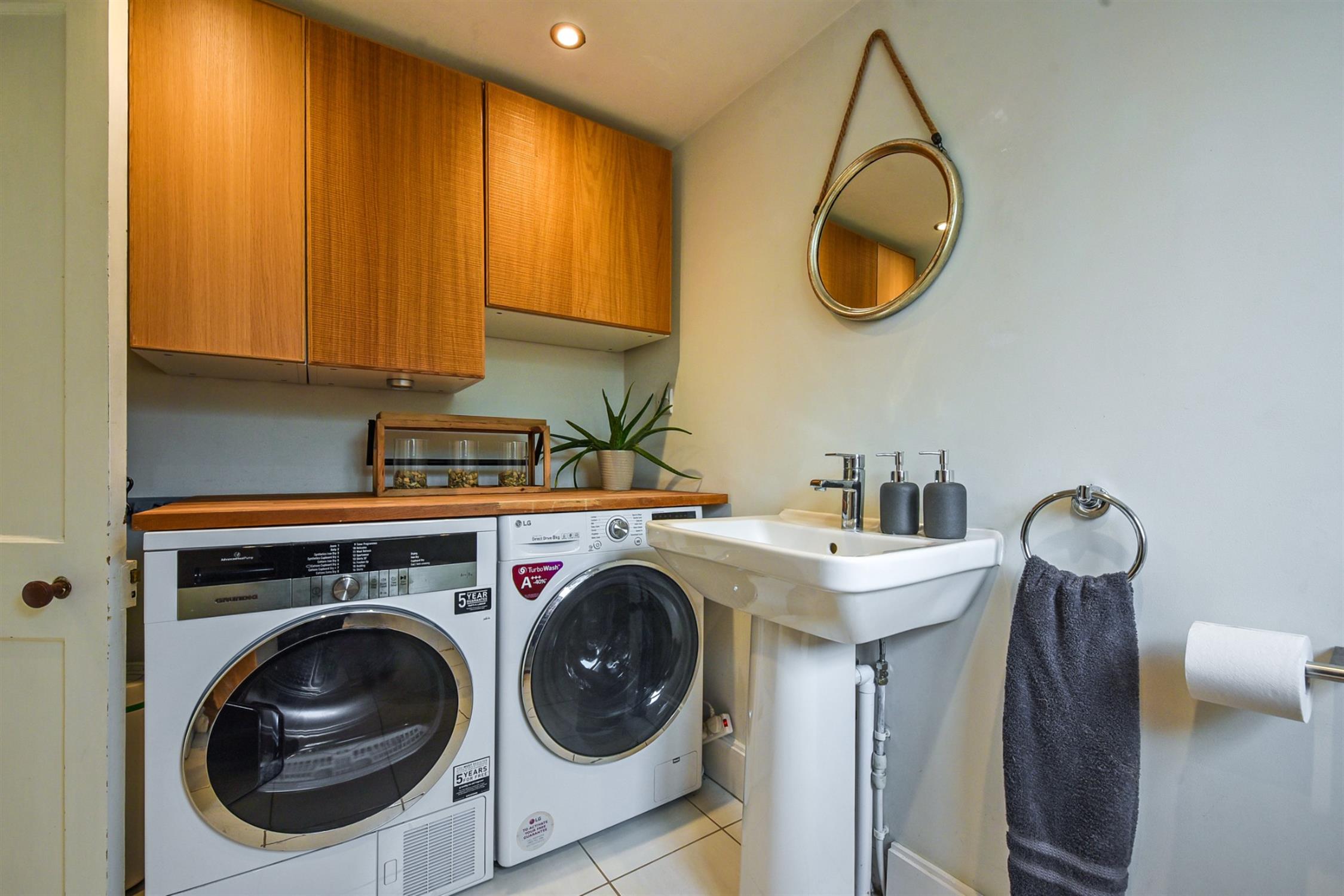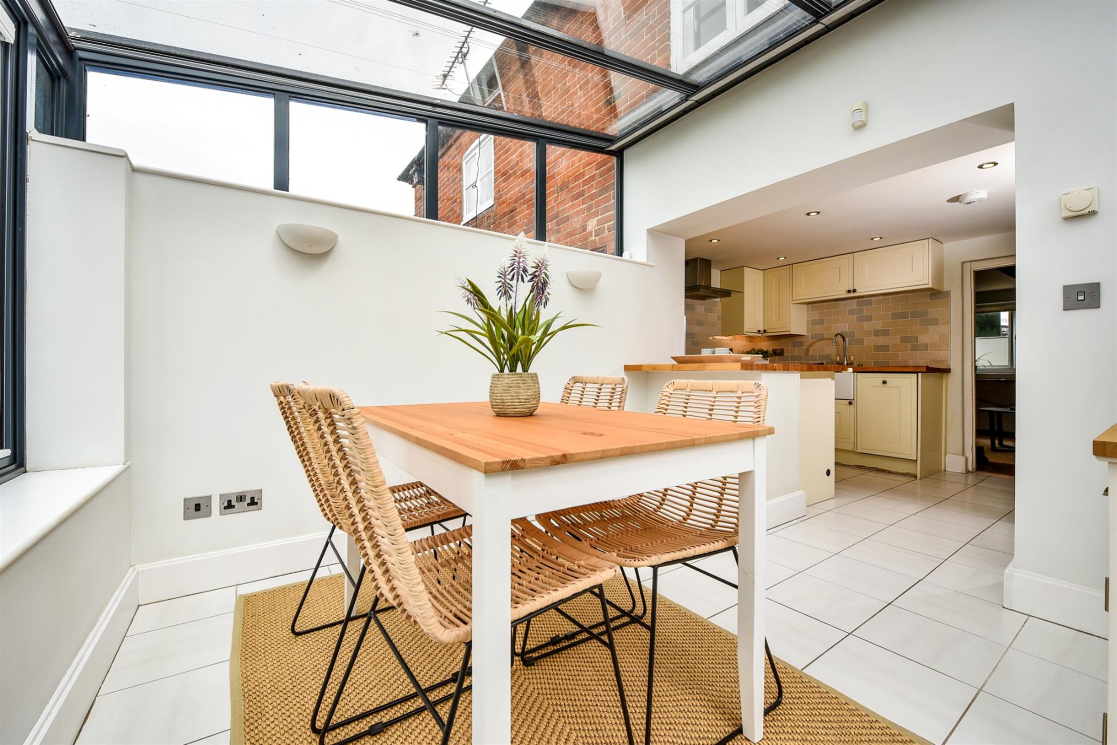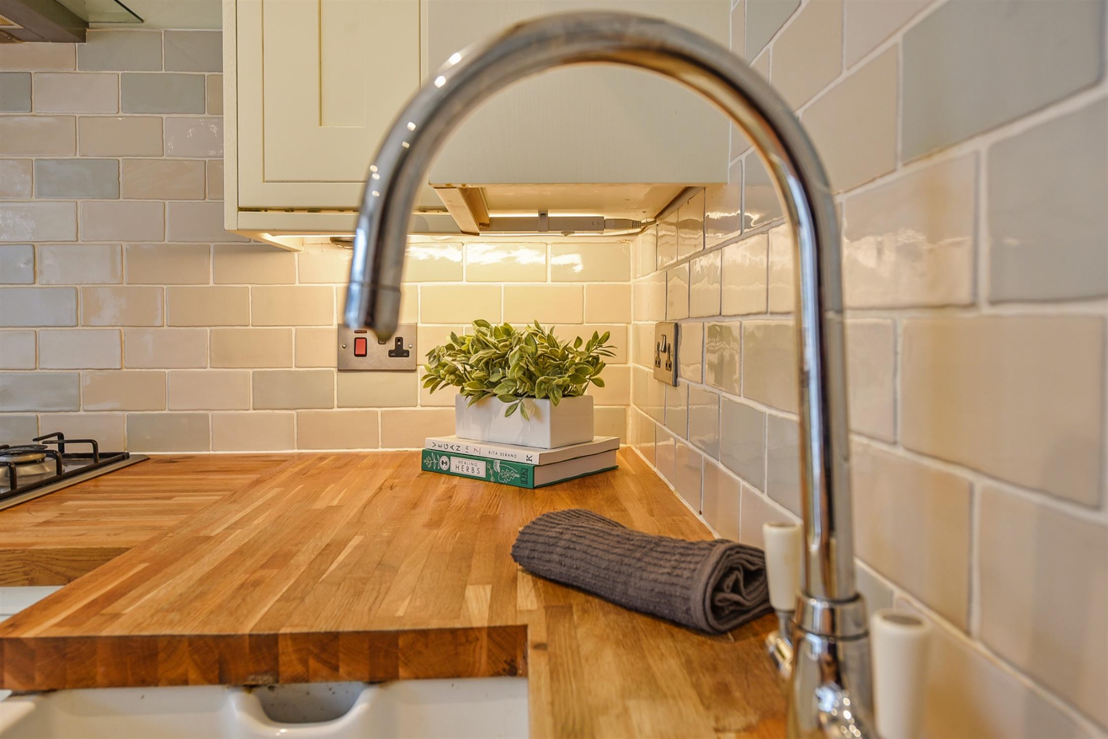 To the front of the property, there is a pretty front garden and a pickett fence. The front door opens to the warm and cosy living room which is fitted with a wood burner with an exposed brick mantle and stone hearth. The social kitchen is the heart of the home and is a terrific space for entertaining. Large format windows, French doors to the garden and a glass roof with anthracite edging allow plenty of natural light into the space and views over the garden to the river beyond. The newly fitted kitchen offers a range of eye and low-level shaker style units with integrated appliances including double oven, gas rings and a wine fridge, and there is also a breakfast bar. Completing the ground floor is a utility room/WC.
