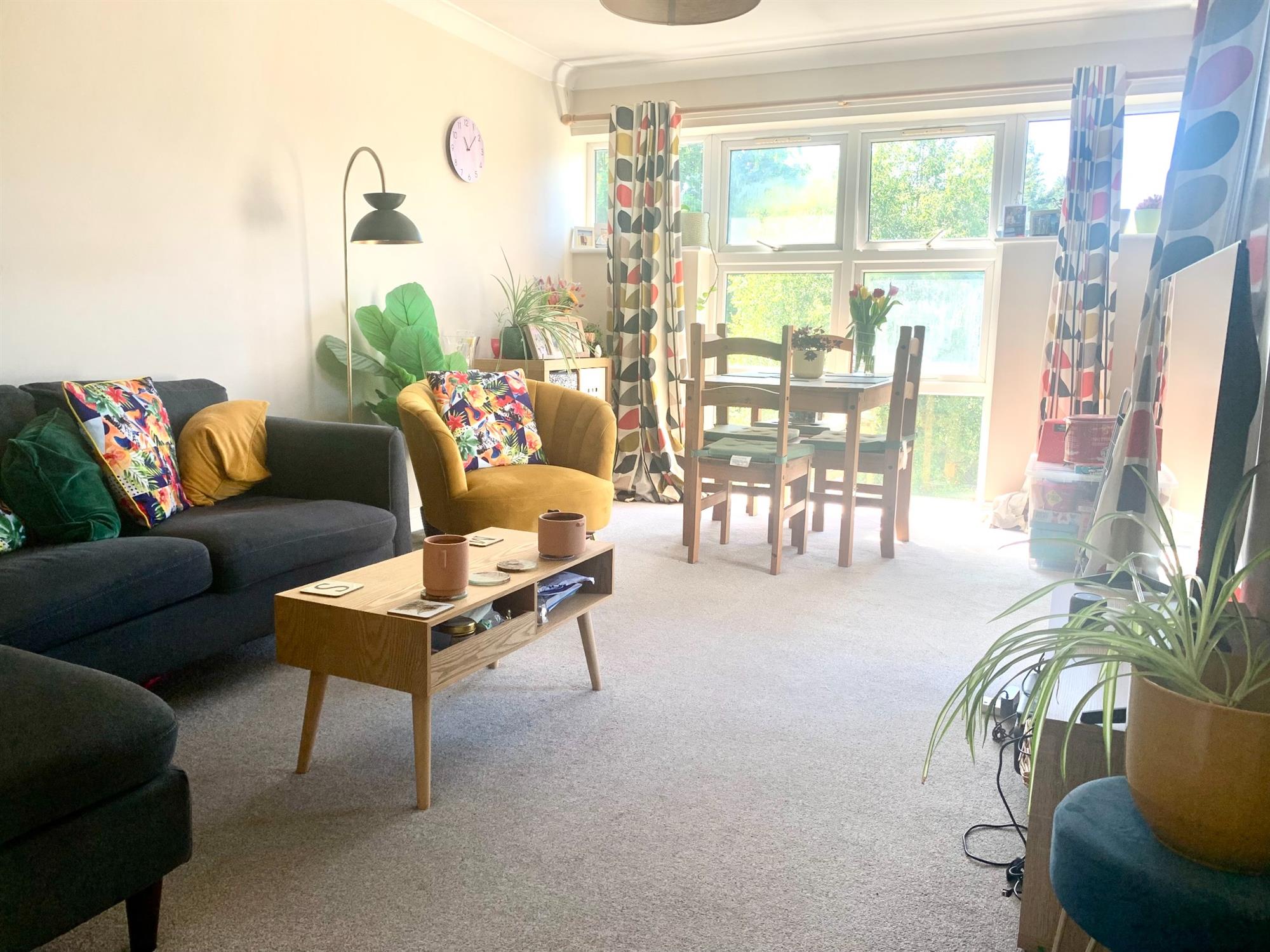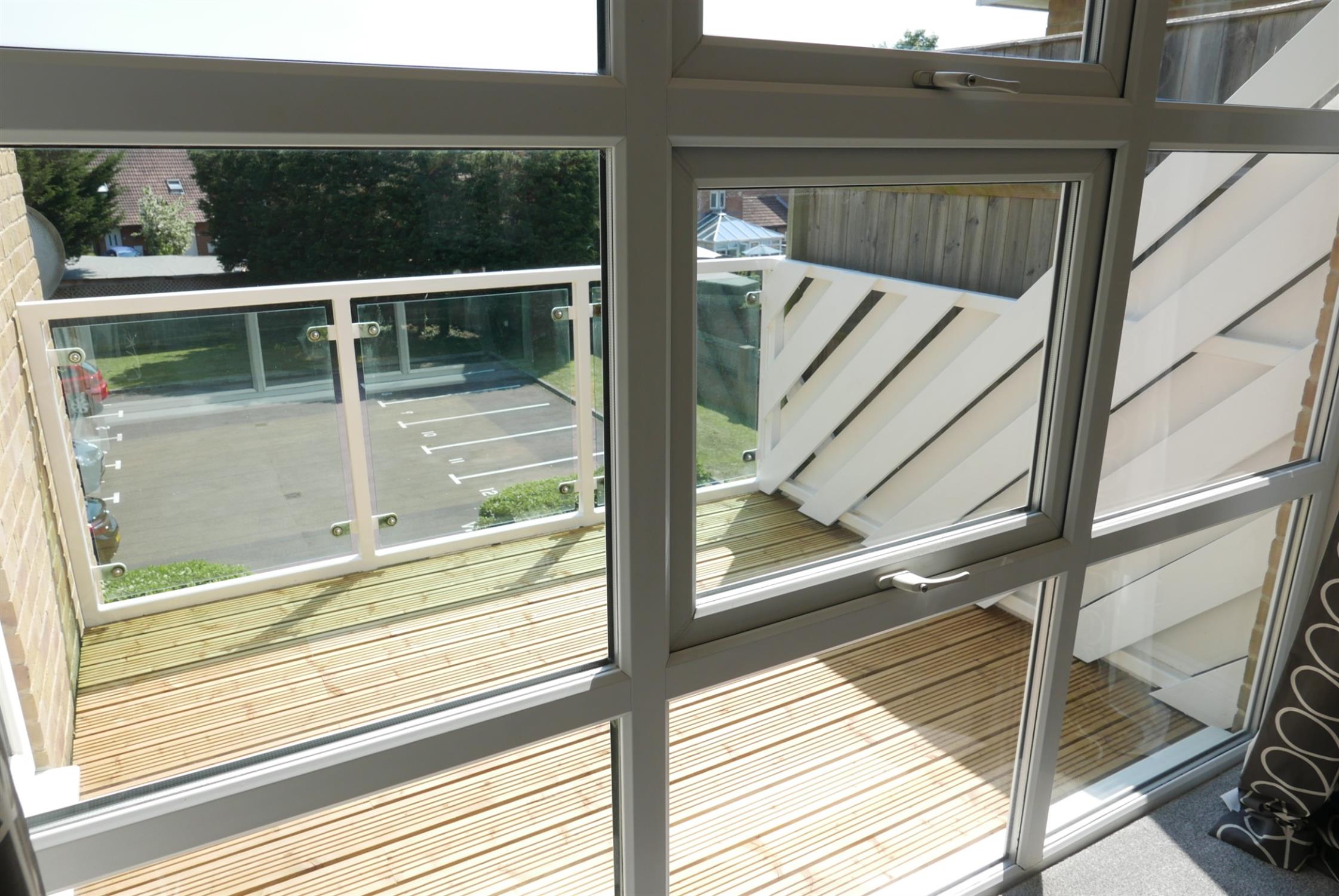 Nice sunny balcony with views to the communal garden and carpark.