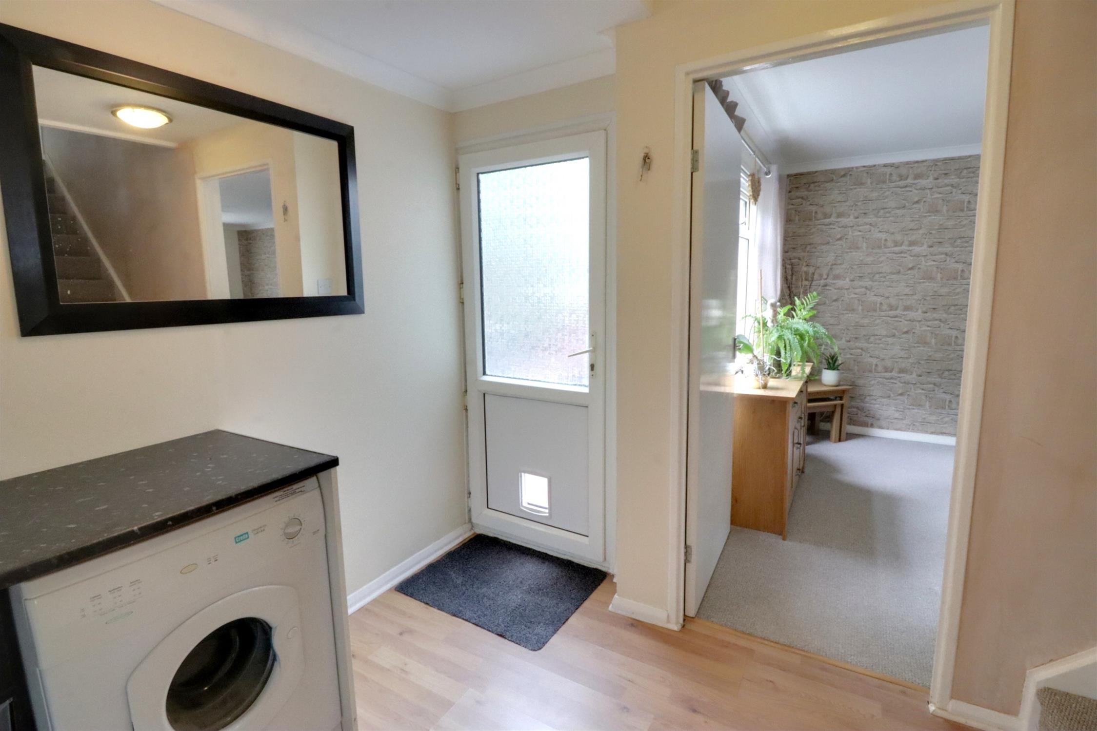 Space for tumble dryer, laminate flooring, radiator, side aspect double glazed door leading to the rear garden, door to the lounge.