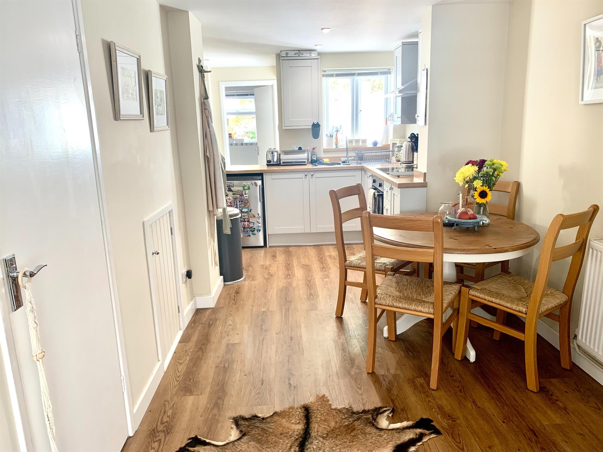 LOUNGE/DINER AREA: Bay window to front allowing lots of natural light with laminate flooring which flows through to the kitchen. Handy storage cupboard under stairs.