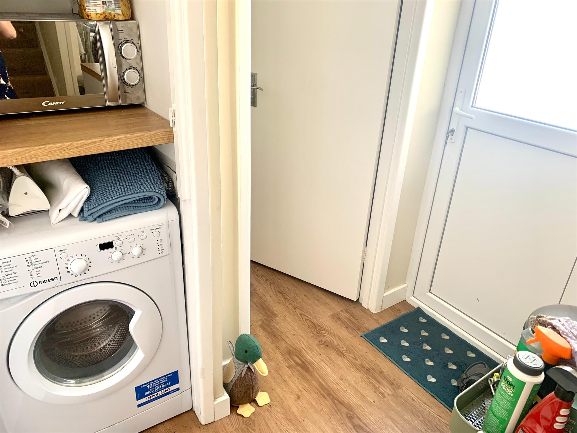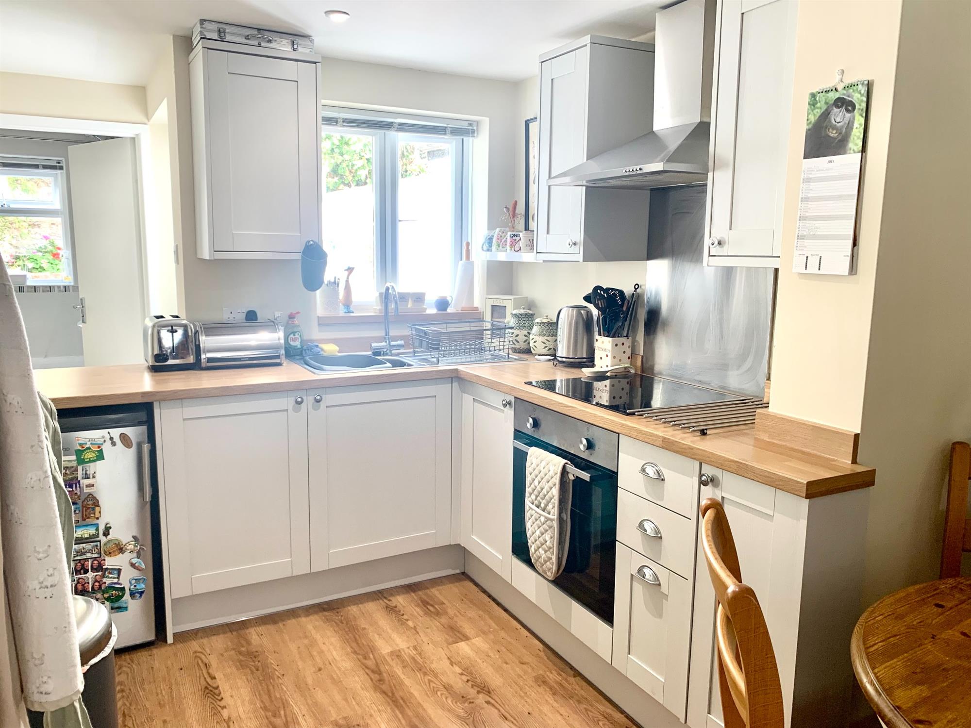 Appliances consist of electric hob and electric oven (washing machine/fridge/freezer is negociable). Window to the rear garden. Handy cupboard off which houses the washing machine. Stairs to first floor and door leading to the bathroom and back garden.