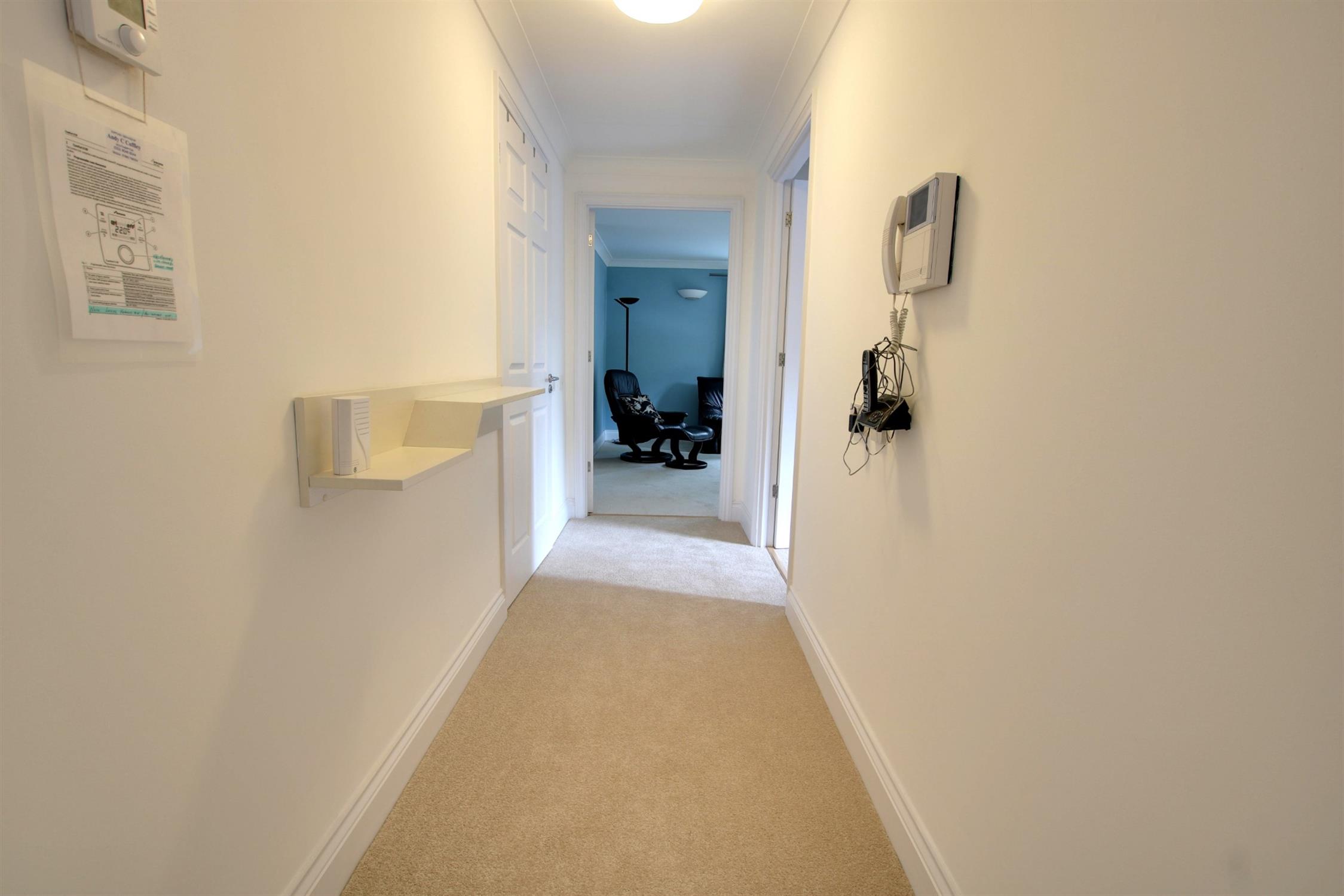Carpeted flooring. Telephone intercom. Doors to all rooms. Three storage cupboards. Radiator.