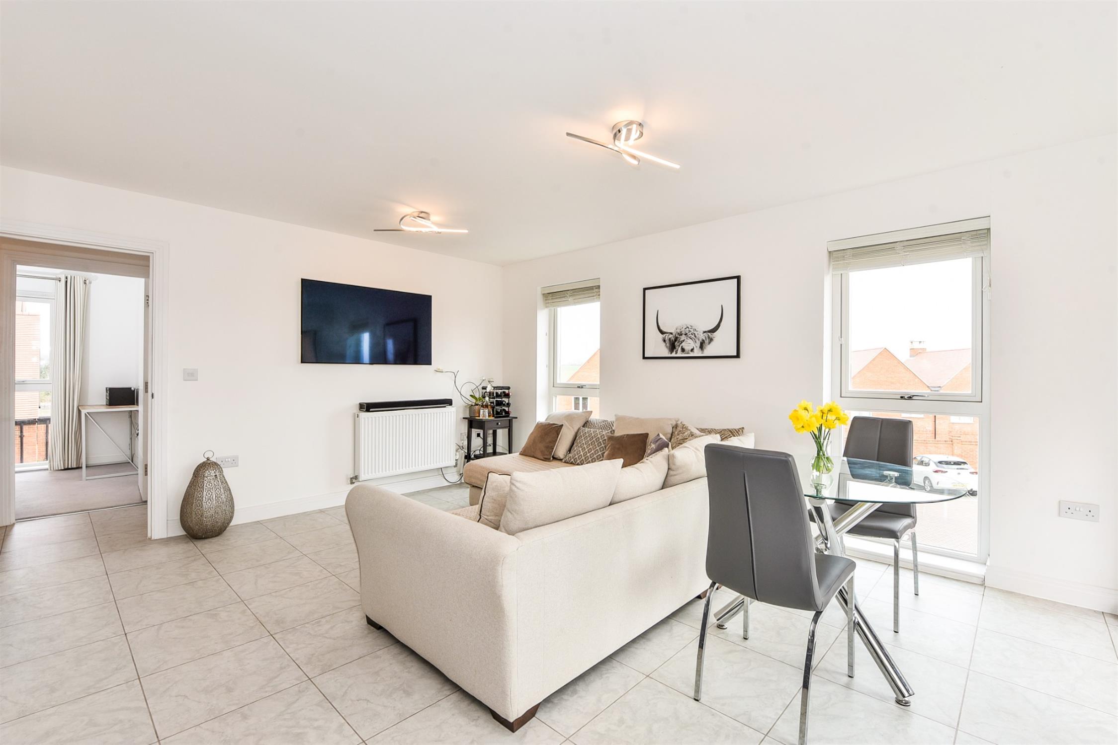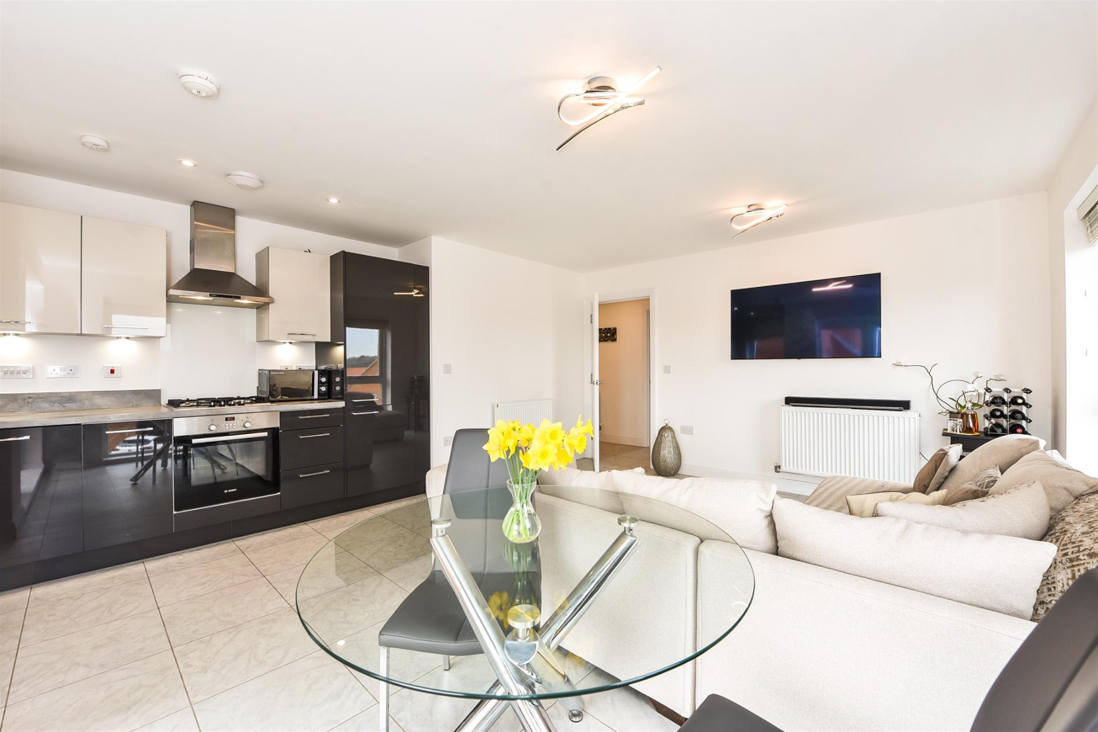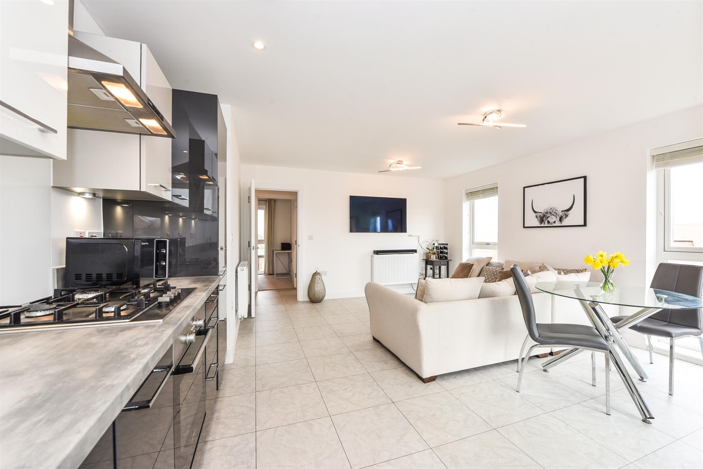 Built by Cala Homes in 2018, the property is beautifully presented and has been lovingly well-kept by the current owner. The bright and open entrance way and stairs lead to the front door of the flat. The hall is a great size, with storage cupboard. The living area is a great open plan space with room for living and dining room furniture.