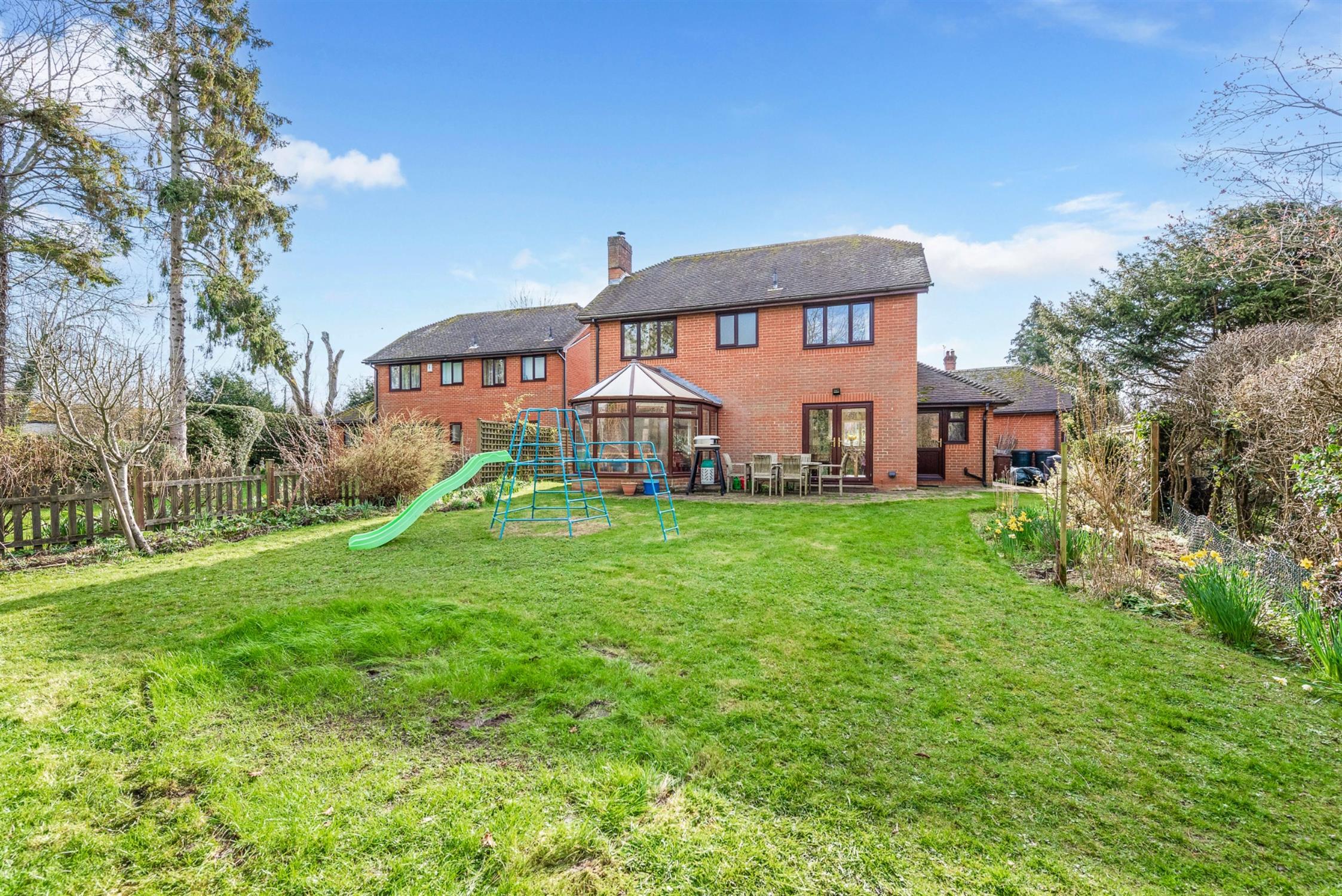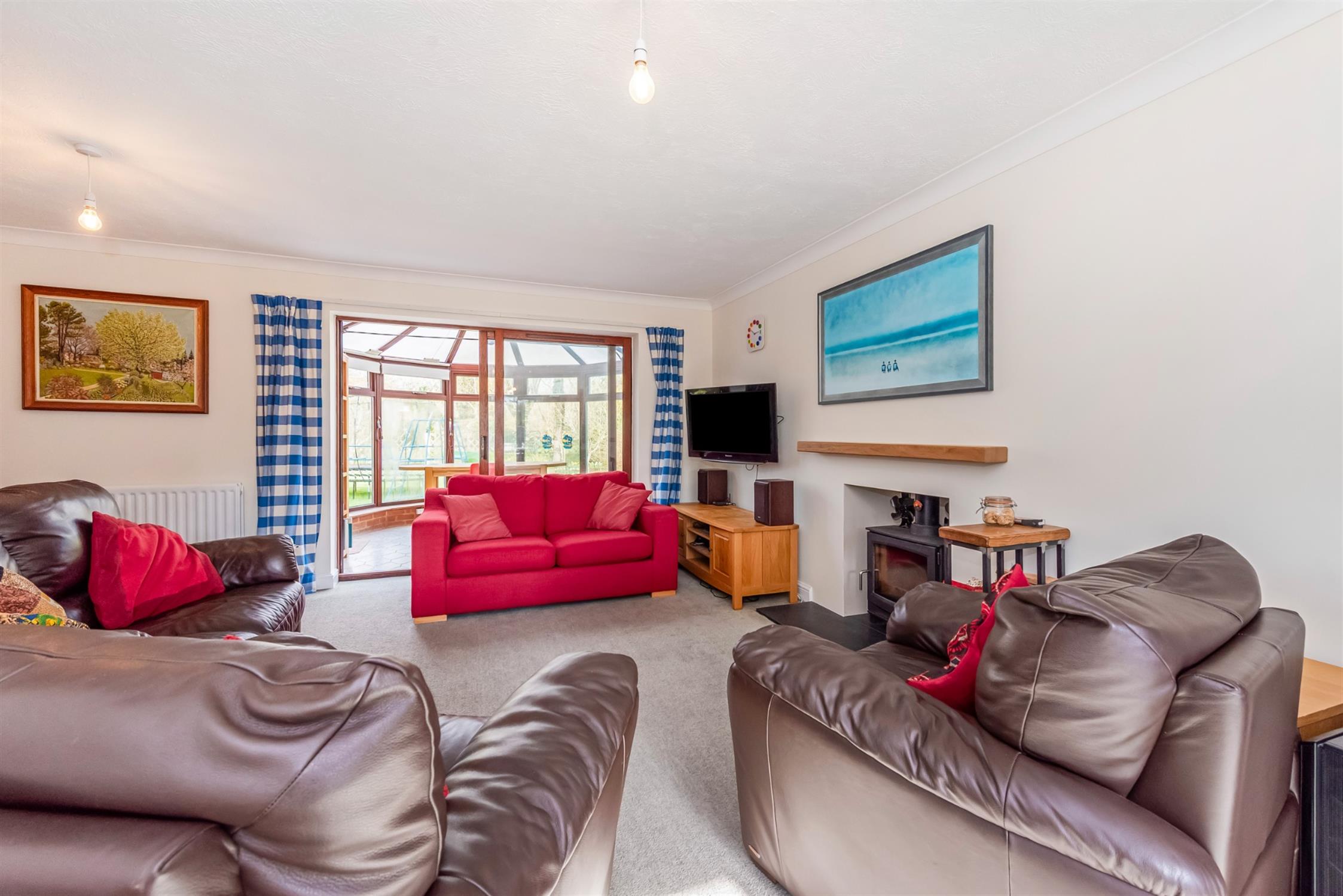 Accommodation:The main entrance is in the centre of the property and opens into a welcoming hall with stairs to the first floor and adjoining WC. To the right of the hall is a large L-shaped sitting room with an inset wood burner and sliding doors into the conservatory from which are panoramic views of the garden. The kitchen/dining room is the perfect space for the family to socialise, with double doors connecting to the sitting room creating a larger space for entertaining family and friends.
