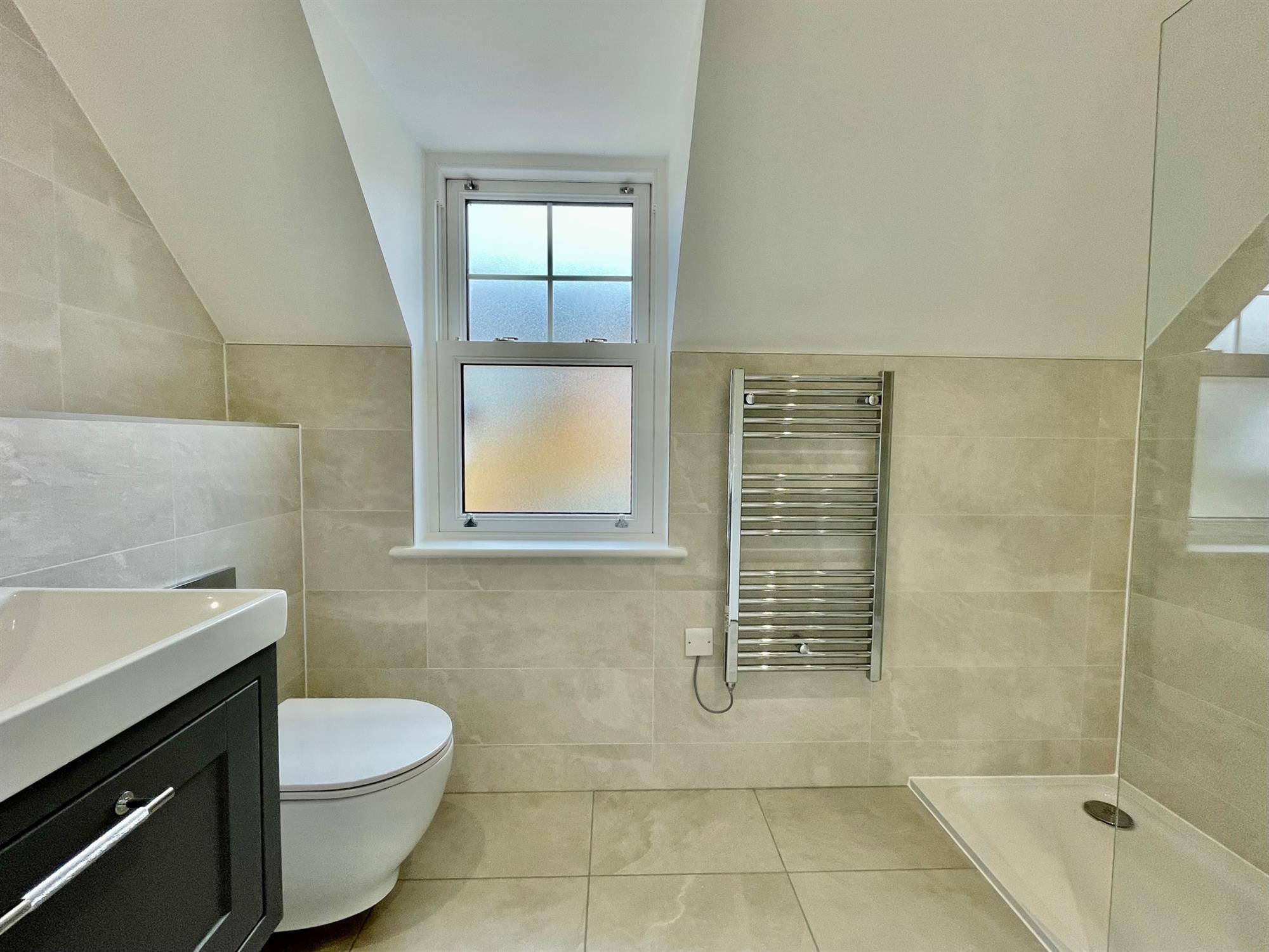 On the first floor, the master bedroom has a contemporary ensuite and fitted wardrobes. There are two further double bedrooms with fitted wardrobes, both enjoying panoramic views. The second bedroom has a luxury en-suite and the is second serviced by the main bathroom. There are radiators to the first floor. The landscaped garden is private and enclosed, with a large patio and lawn overlooking excellent views. There is a driveway to the front for two cars.