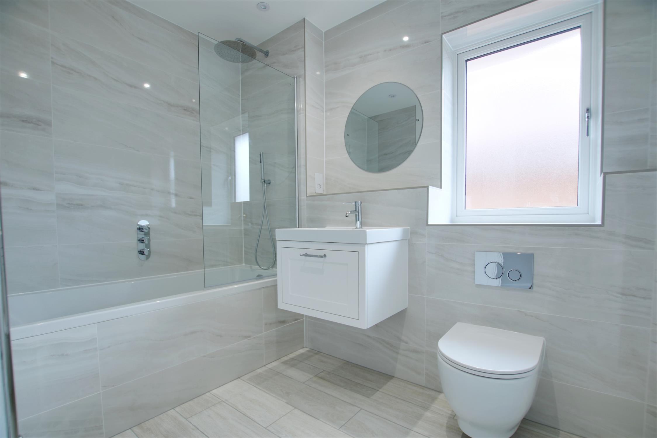 Unlike many large developers, Doswell Projects have included luxury fixtures and fittings, including carpets, tiled flooring, with under floor heating to all ground floor rooms, a fully fitted kitchen with integrated appliances and Quartz splashback and worktop. Reception space is plentiful, with a generous living room with box-bay window and a spacious light filled kitchen/dining room with large patio doors to the garden and views out over the South Downs. A utility room and a WC complete the ground floor.