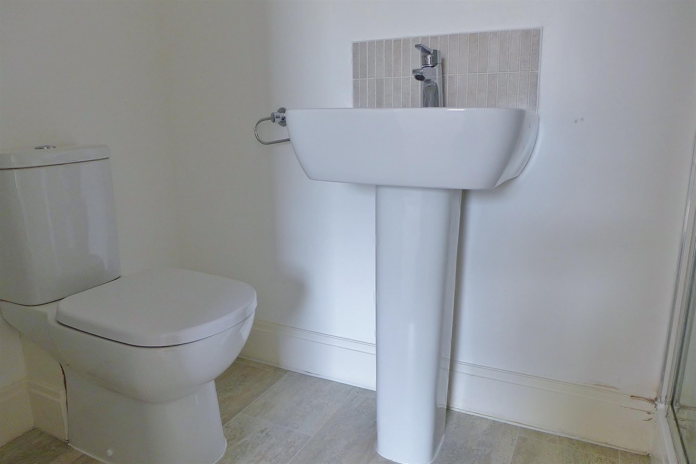EN-SUITE: White WC, wash hand basin and shower cubicle.