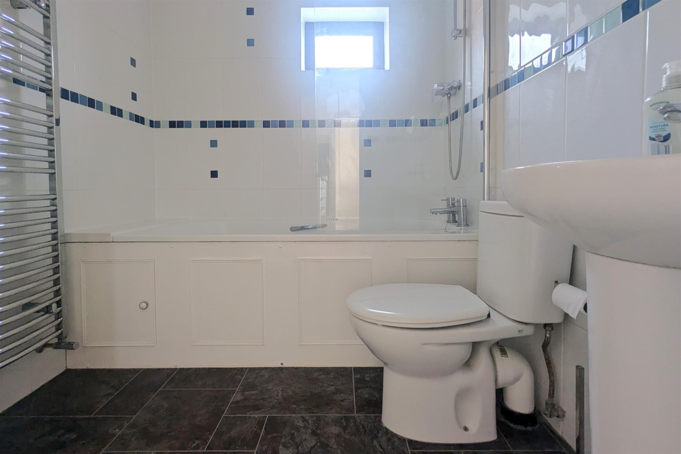 BATHROOM: White suite comprising WC, wash hand basin and bath with shower over.
