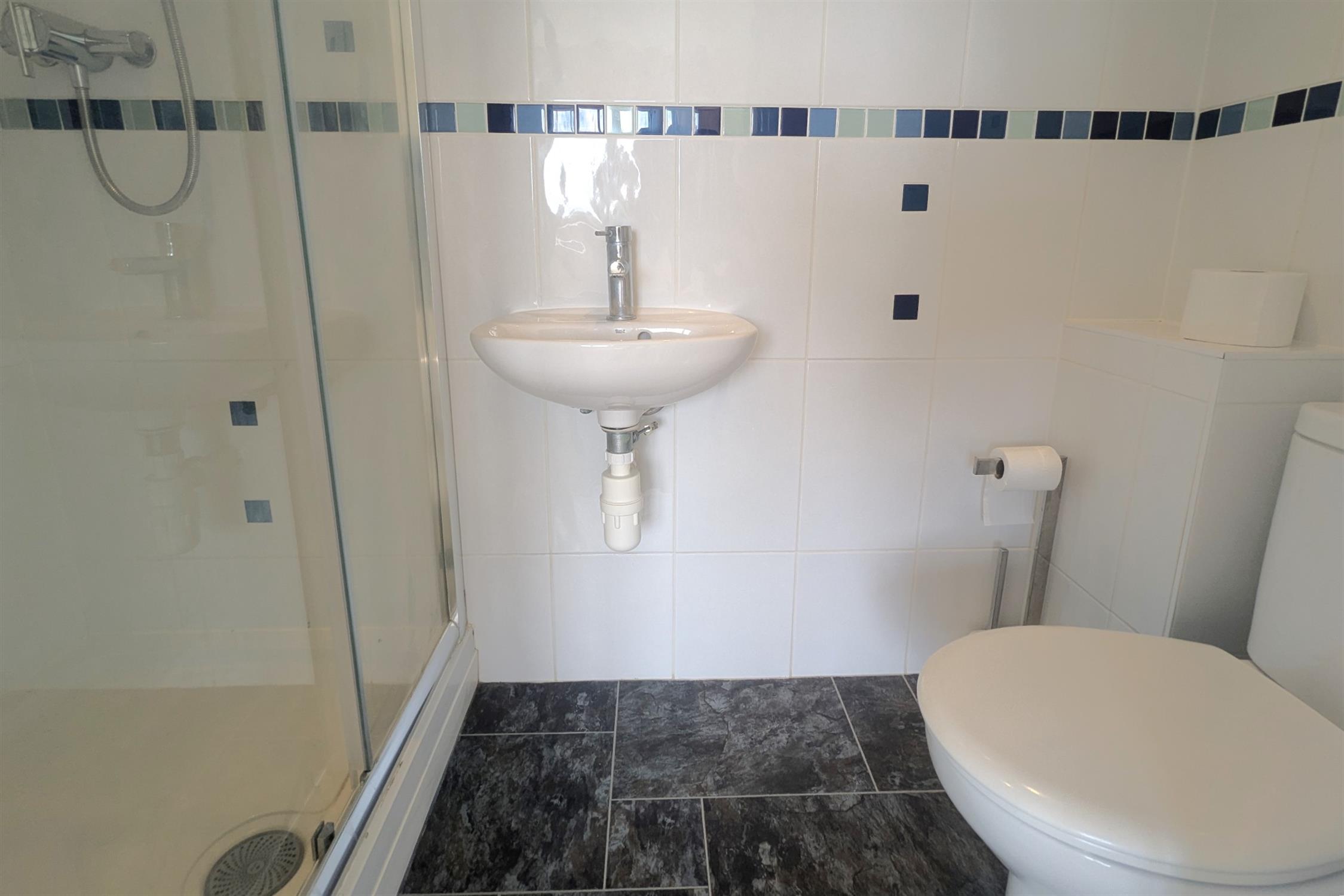EN-SUITE: White WC, wash hand basin and shower cubicle.