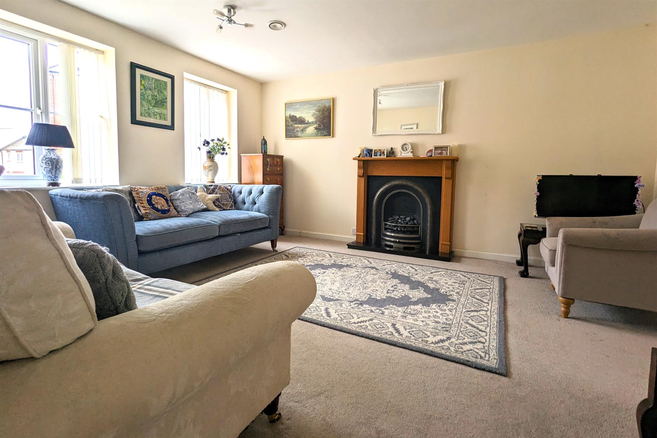 LOUNGE: Bright good size living room with electric fire and double doors to dining room.