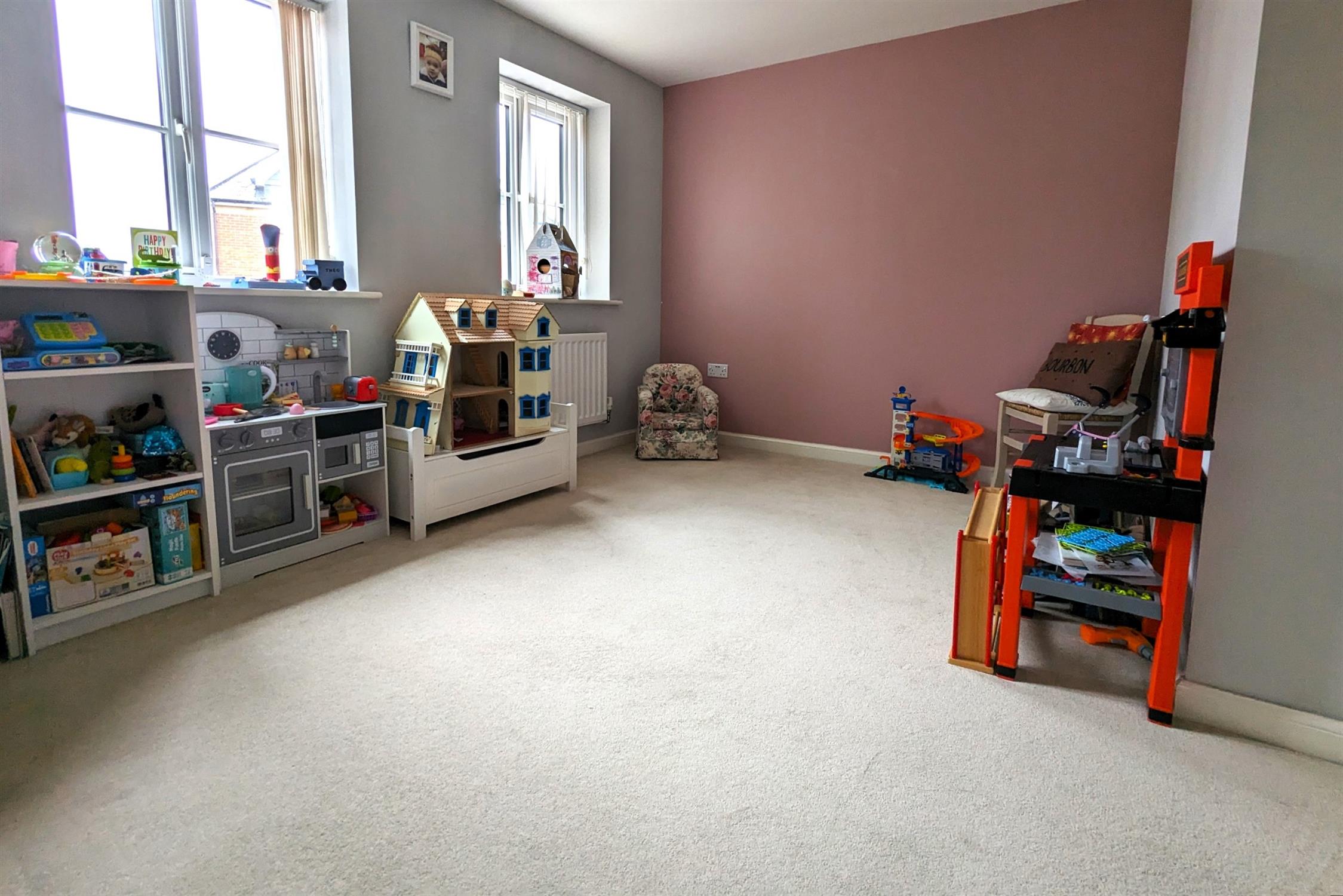 BEDROOM THREE: Double bedroom (currently used as a playroom in photographs).